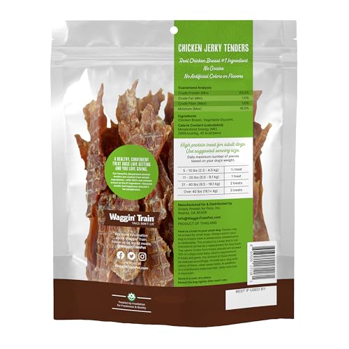 Waggin' Train Jerky Tenders are a great way to show your pup how much he means to you. With a mouth-watering taste and texture, these wholesome dog treats are a perfect way to reward him for being a good dog. The delicious chicken jerky is made from real, high-quality ingredients and full of great taste. Why Waggin' Train? ➠Featuring only the freshest, cleanest ingredients for a guilt-free indulgence. ➠No artificial flavors, colors, or preservatives jerky for dogs ➠Your pup will get a real kick out of these treats and you'll be happy to get the treats that they'll love without the guilt. ➠A healthy, lean protein dog chicken jerky treats that's perfect for your pup. ➠Your canine companion is sure to love this tasty snack. ➠Recommended for adult dogs with teeth that are strong enough to chew tough kibble pieces. ➠Dog treats chicken jerky are made with the best ingredients so you can give your pup a nutritious treat. ➠Two simple ingredients: chicken and vegetable glycerin. ➠No artificial colors or flavors, so no nasty surprises in your dog's meals. ➠Grain-free and corn-free to promote healthy digestion. Waggin' is committed to providing the best tasting jerky pup treats on the market. And, if for any reason you're not satisfied, simply let us know why or, feel free to contact us with your original receipt to Waggin' along with your feedback. Click on ADD TO CART & Get the best dog chicken treats TODAY!!!