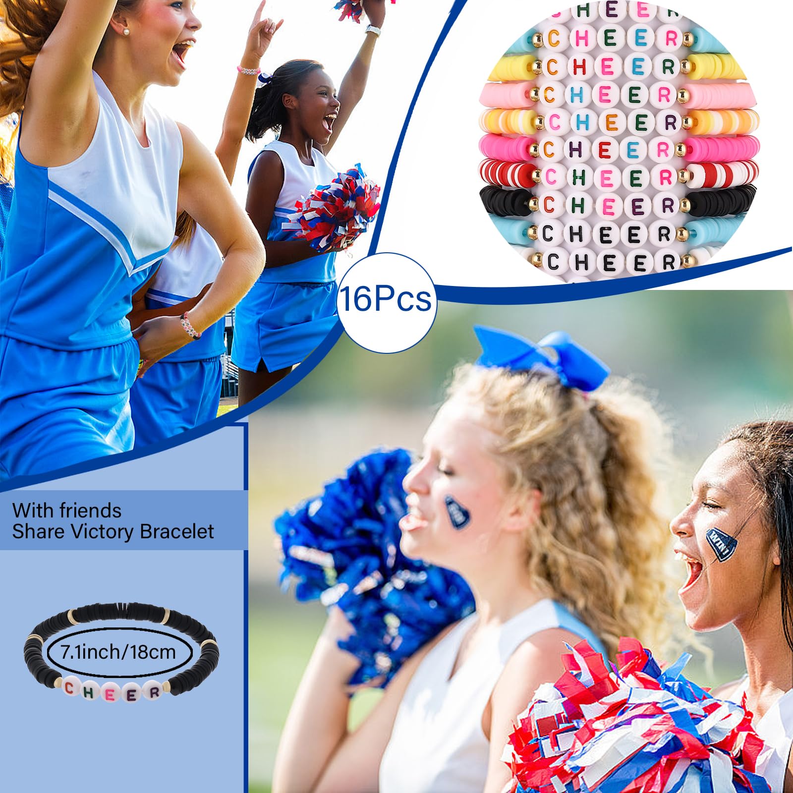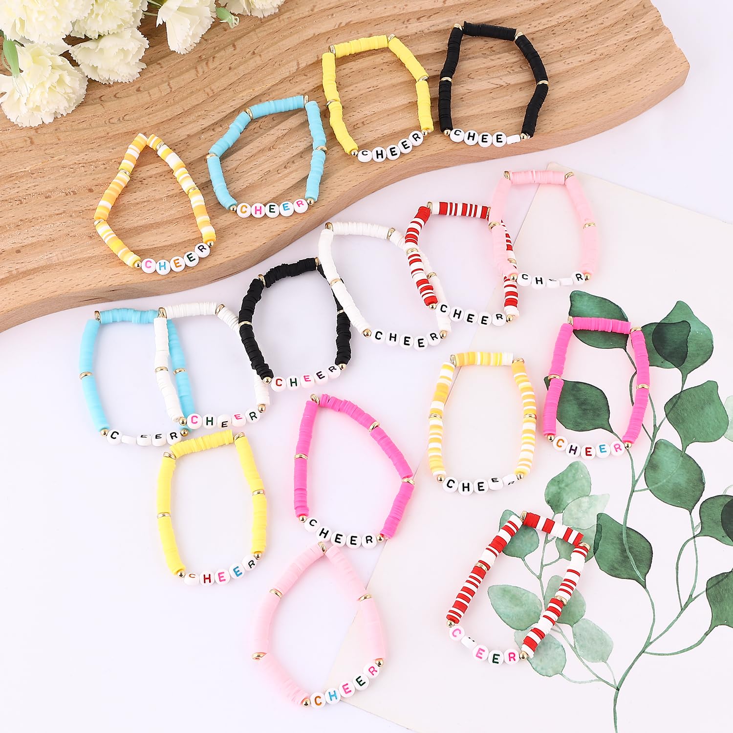 【Express Your Care】 whether gifting family, friends, colleagues, or teammates, these clay bead bracelets are nice pick to show your affection; Ideal for cheerleading themed parties or on routine days