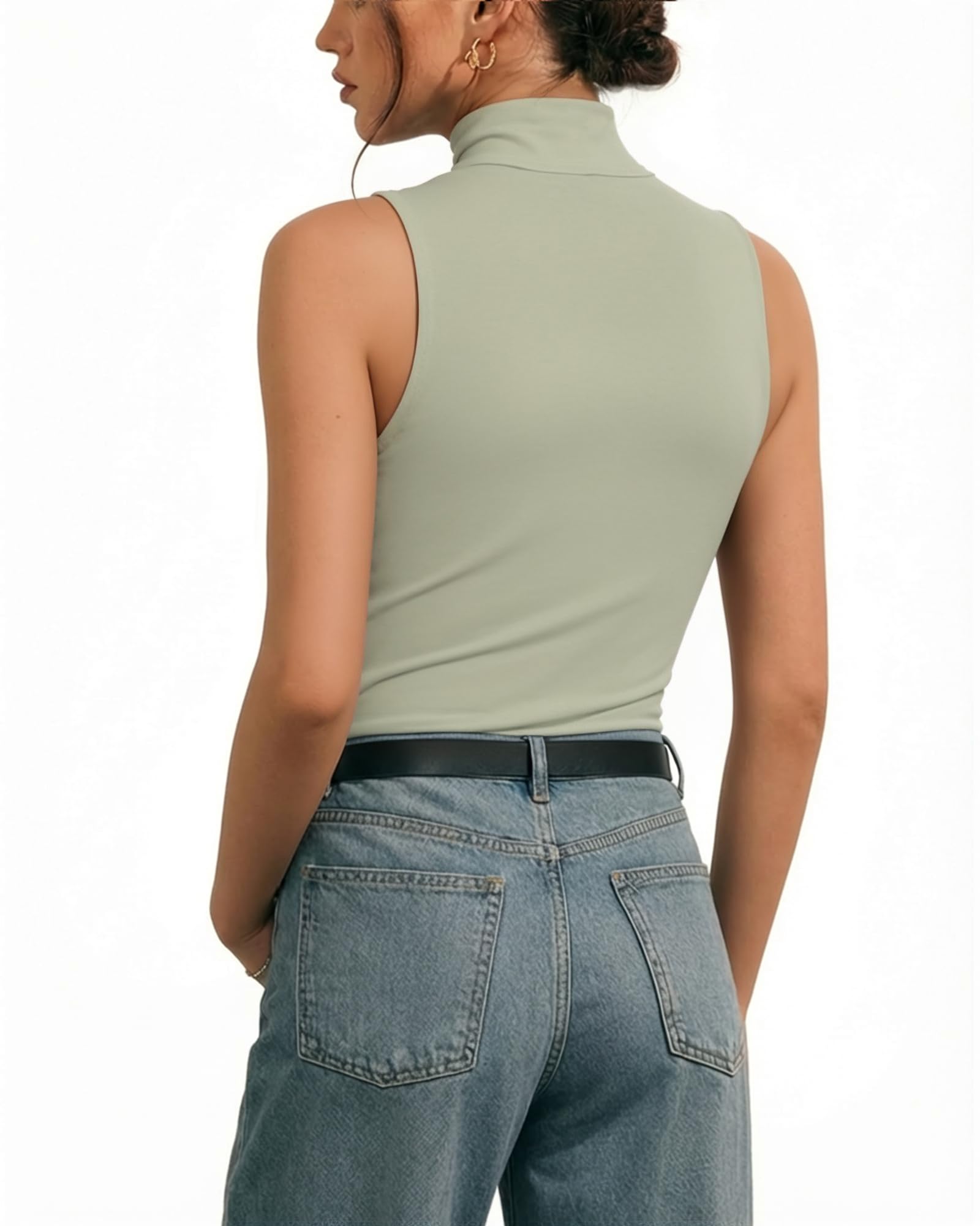 Second-skin Bodysuit Collection: MANGOPOP seamless Mock Turtle Neck sleeveless bodysuit ,offering an incredibly soft, stretchy, lightweight, and breathable feel akin to a second skin