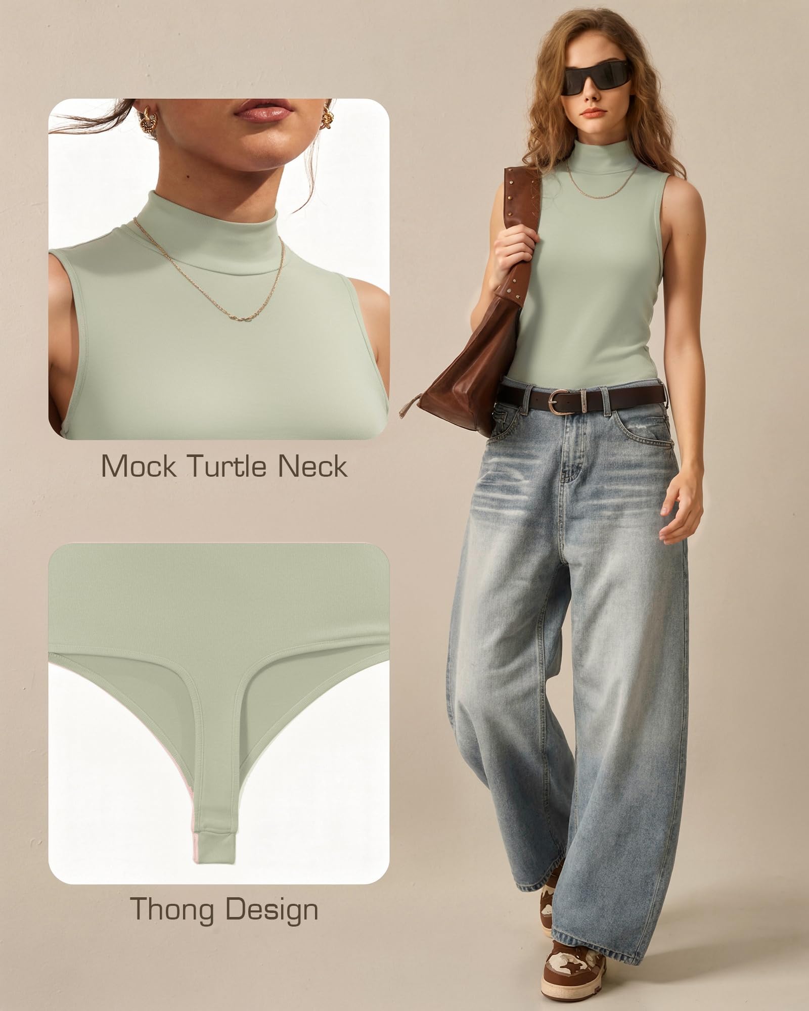 Versatile Wardrobe Essential: The basic Mock turtleneck leotard tank tops bodysuit for women is easy to pair with jeans, shorts, skirt in all season