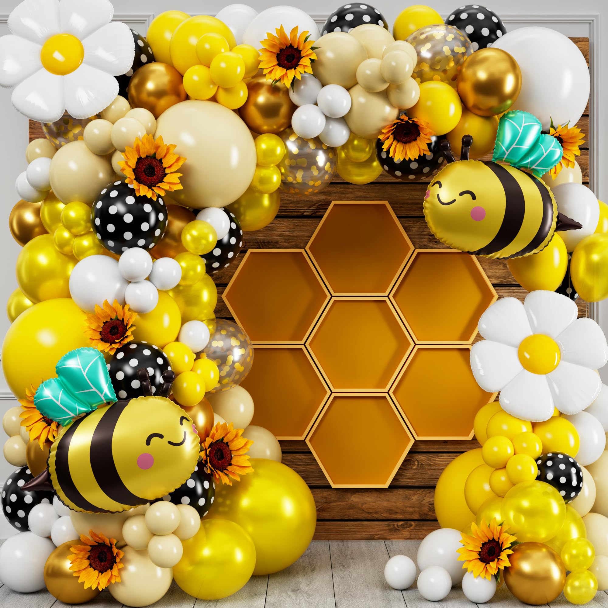 【EVERYTHING YOU NEED IN 1 KIT】Make your party come to life with a big beautiful balloon garland! Dress up your Bee Party Decorations or Bee Birthday Party Decorations with this Bee Balloon Garland Kit. Contains 100 Yellow, White, Gold, and Black Polka Dot Bee Balloons and accessories all in 1 Kit. PLUS, you get Step-by-Step Instructions for creating your Bee Balloon Arch. You will be shocked at how fast and easy it is to assemble, even if it’s your 1st time!