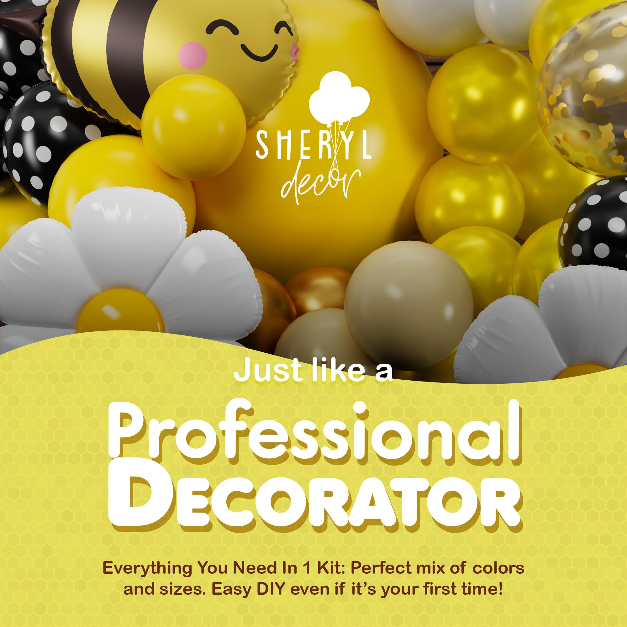 【PROMISE, OF COURSE】Any popped balloons? No Worries, message us and we’ll send you a full rebate or replacement ASAP! We understand your important event is right around the corner so when your Bee Garland arrives, check it and tell us if anything is missing. We’ll replace it complimentary before the big event. What Will It Be Gender Reveal, Happy Bee Day Birthday, Honey Bee Baby Shower, or just because… Make Your Party Come to Life, with Sheryl Décor.
