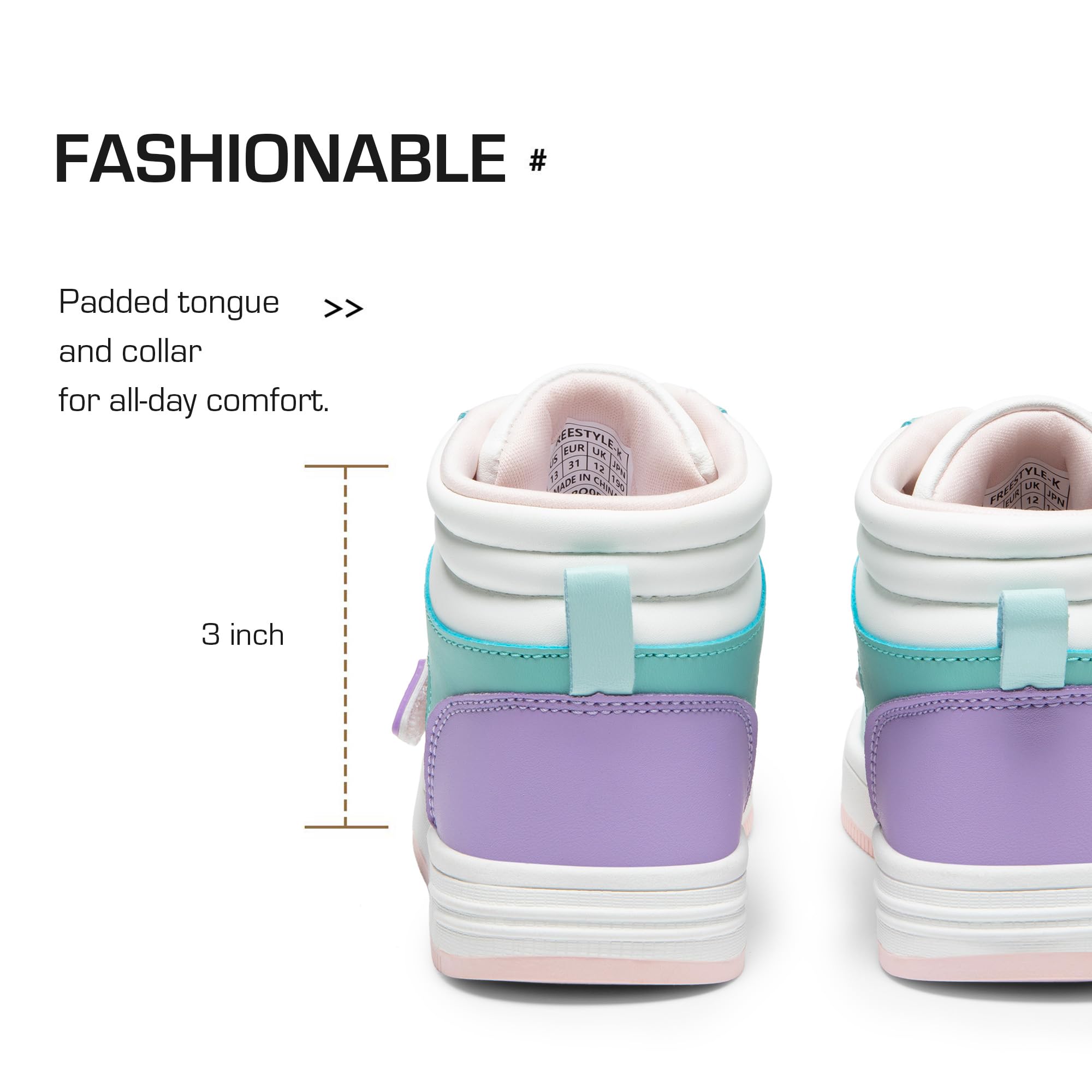 All-Day Comfort: Designed with a padded tongue and collar, these kids’ high-top shoes ensure maximum comfort during long hours of play, making them ideal for the court or the playground.