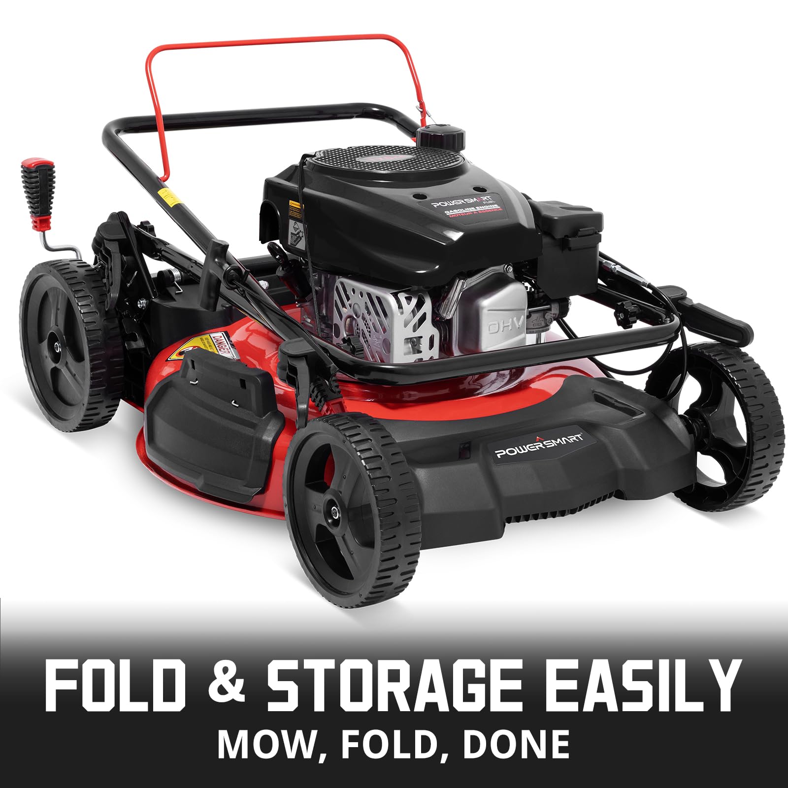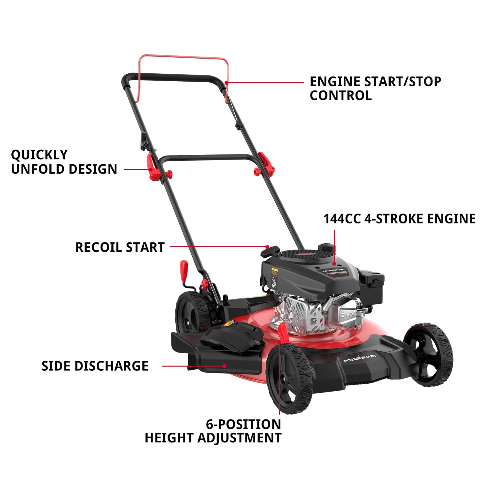High Rear Wheels: Durable 10-inch rear wheels and 7-inch front wheels are designed for easy, smooth mowing with less efforts.