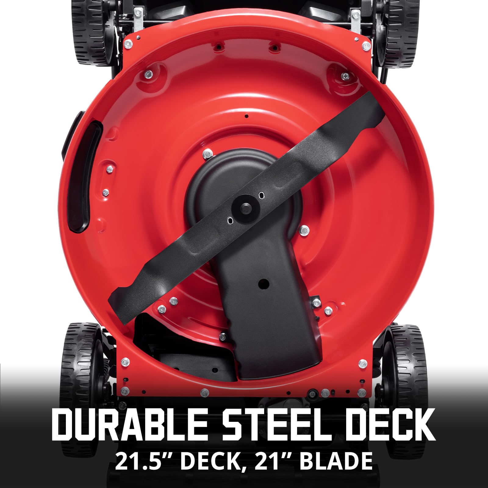 21" Blade: The 21" heavy-duty cutting blade delivers better cutting effect, allowing you to mow more in less time.