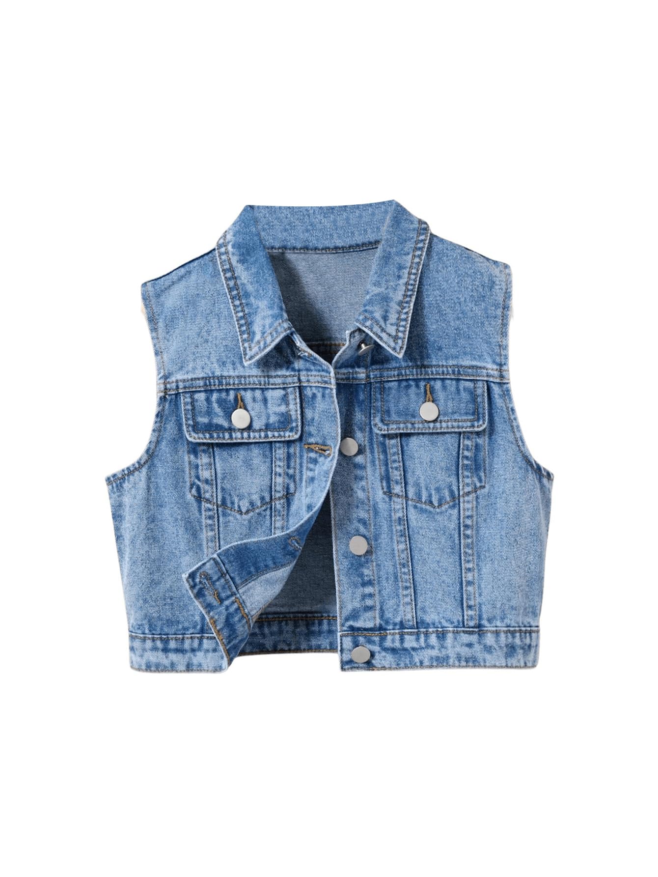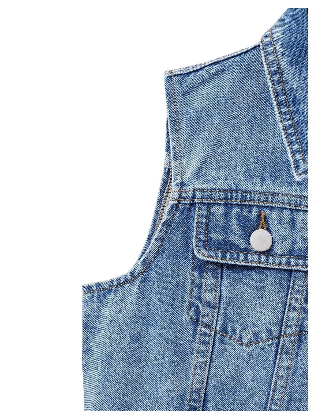 Features: Sleeveless, button front, collared neck, pocket, solid color, casual demin vest jacket