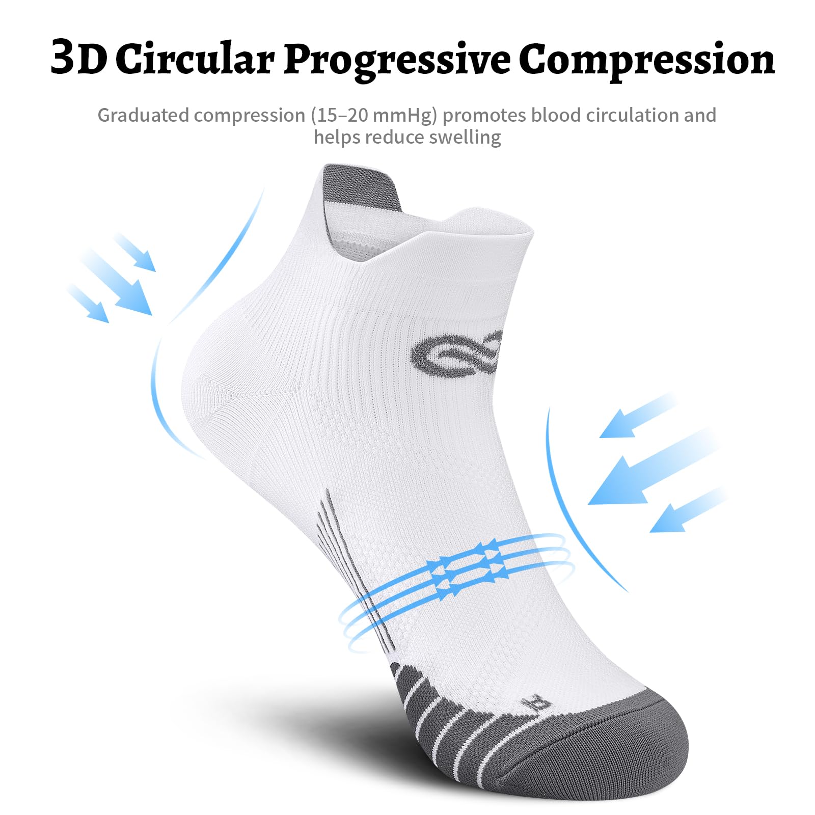 [360 PROTECTION FOR YOUR FEET] The no show compression socks with 3d circular progressive pressure design provide you with permanent all-around protection, ensure your feet at the right angle to reduce sports injuries while providing ankle support