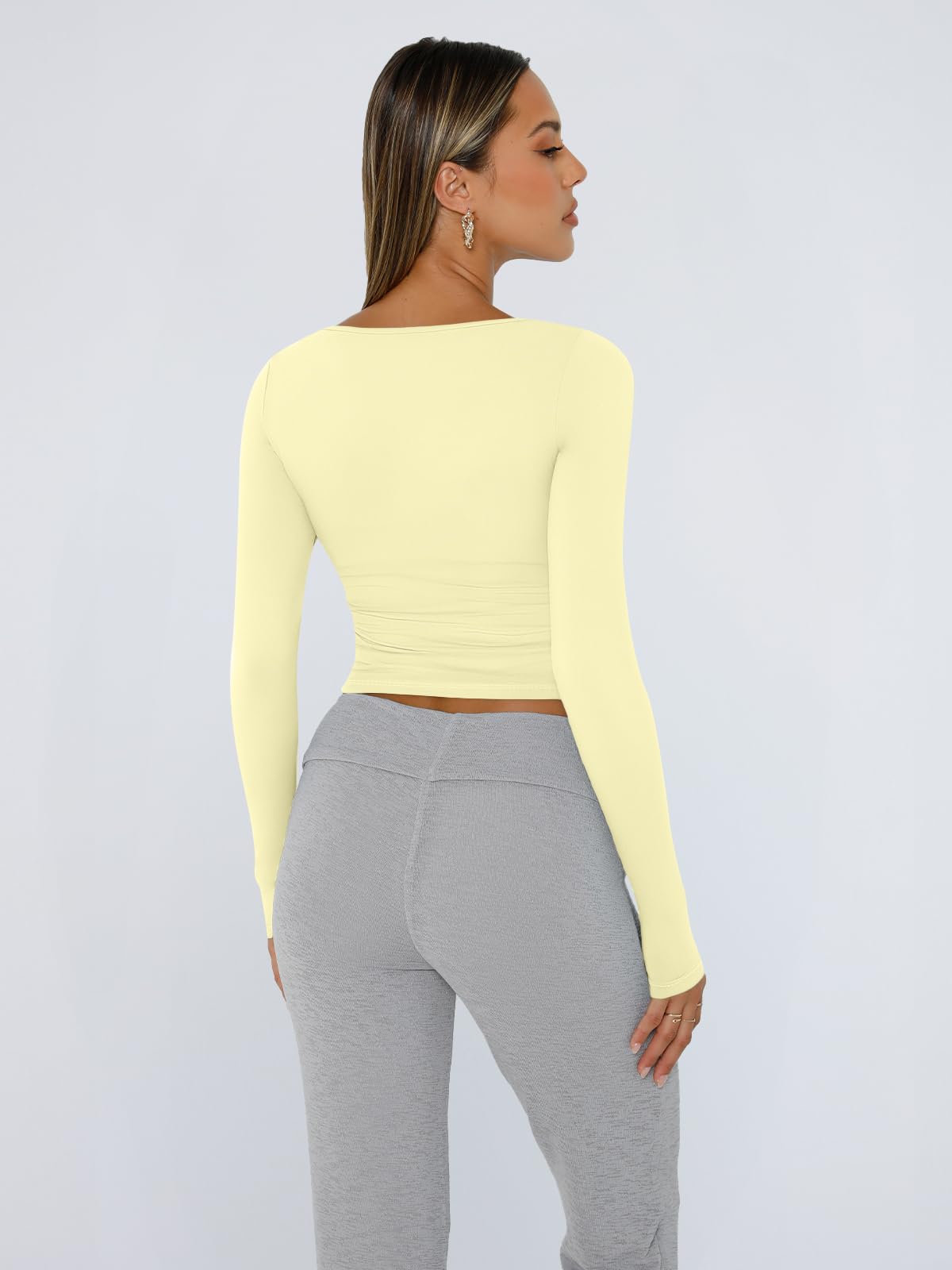 Soft Material: Crafted from a blend of 88% polyester and 12% spandex, this long-sleeve top is lightweight, ultra-soft, and highly stretchable. It offers a second-skin feel, making it an ideal layering piece or standalone top