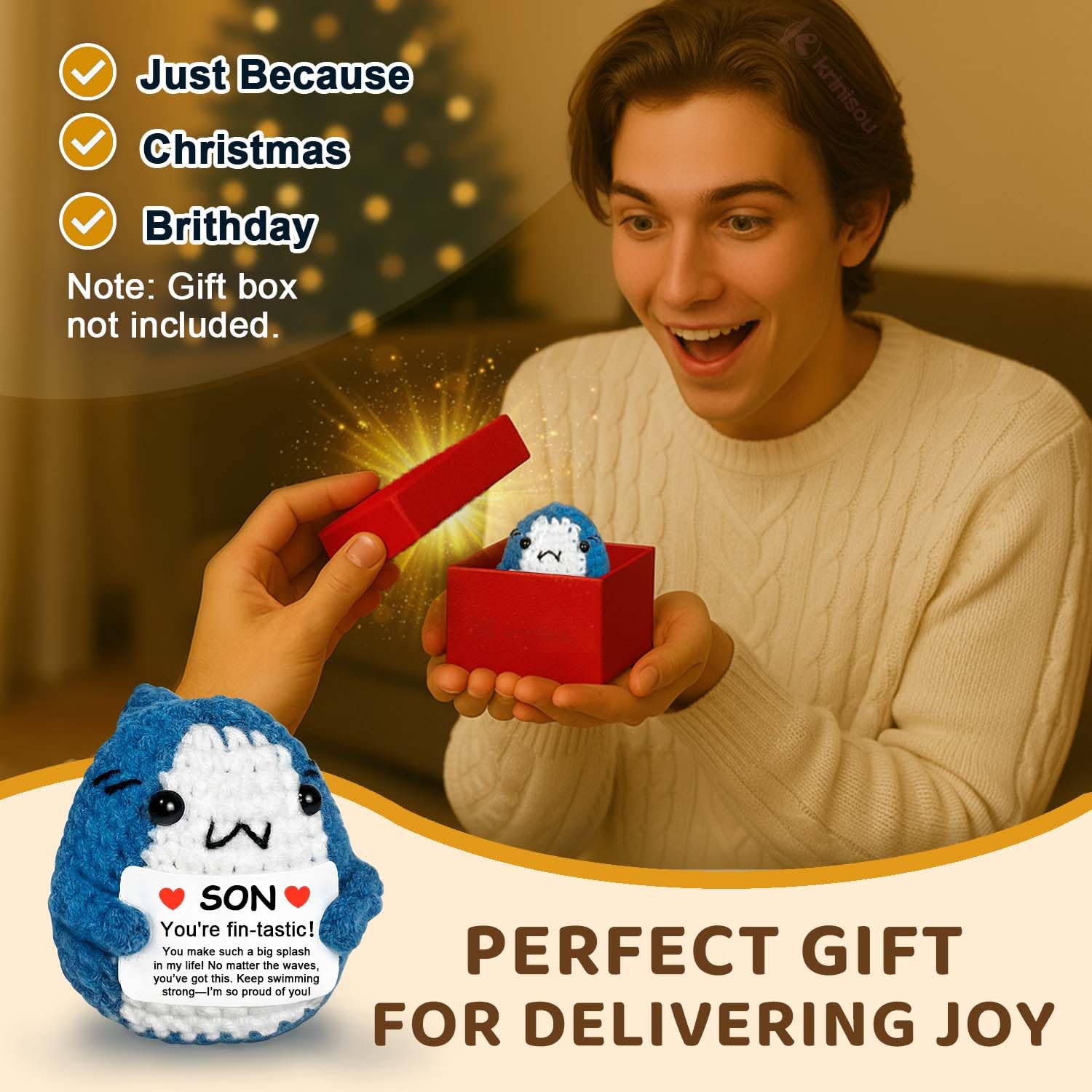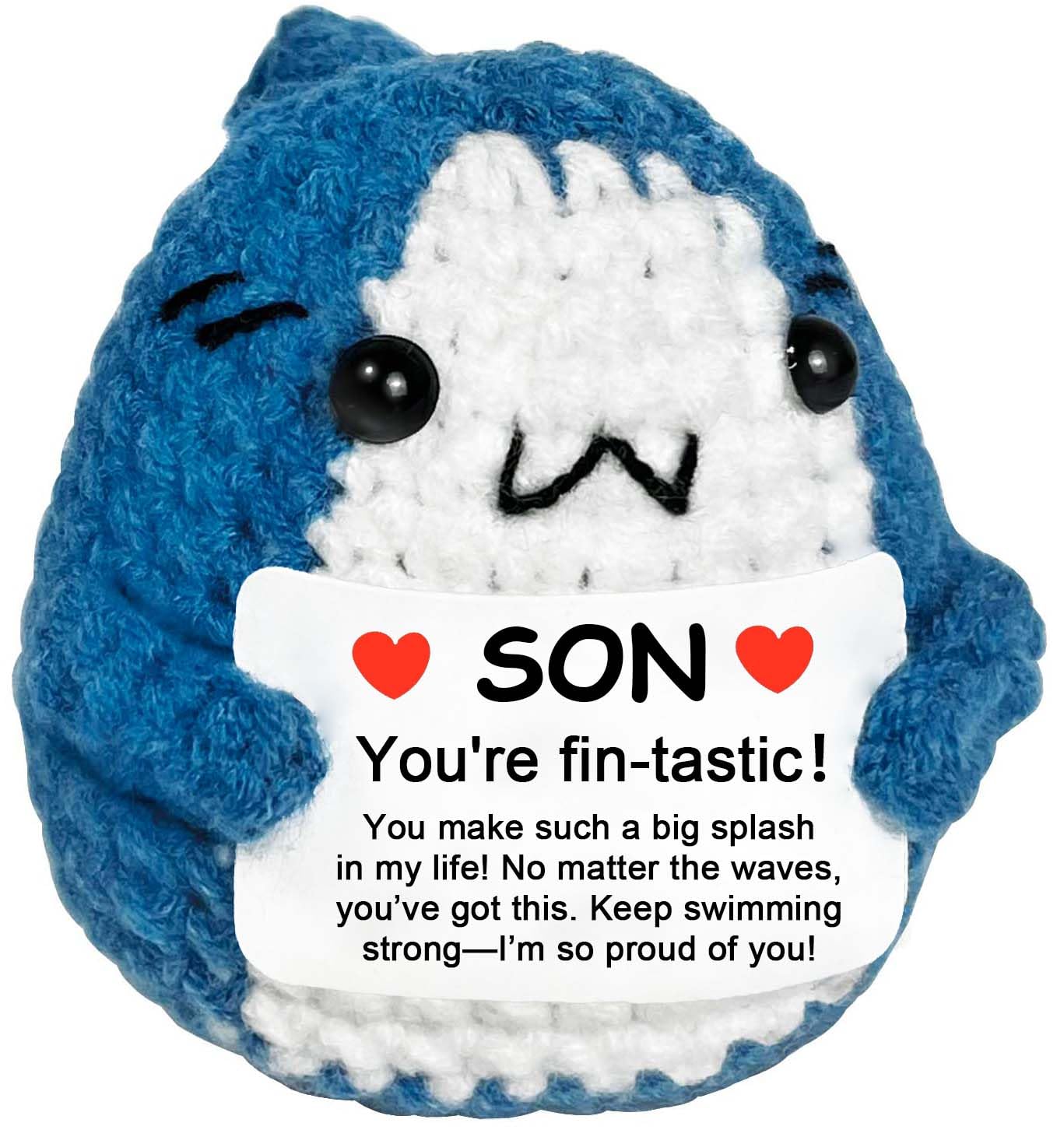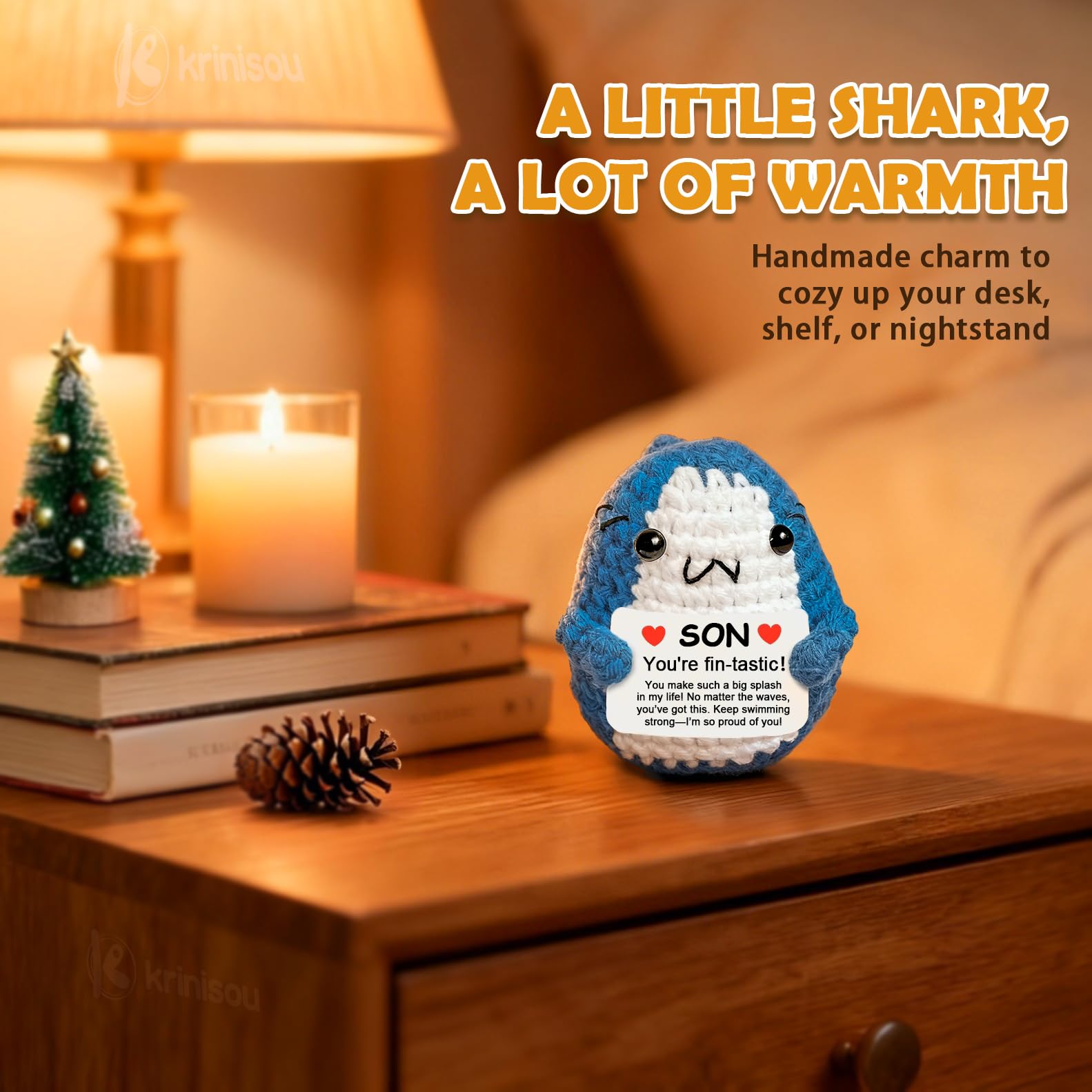 Cute Son Gifts: Krinisou adorable shark gifts hold a heartfelt card that says “Son You're fin-tastic! You make a splash in my heart! No matter the waves, you‘ve got this. Keep swimming strong—I'm so proud of you!” It's a sweet and uplifting gift that brings a smile to your son’s face