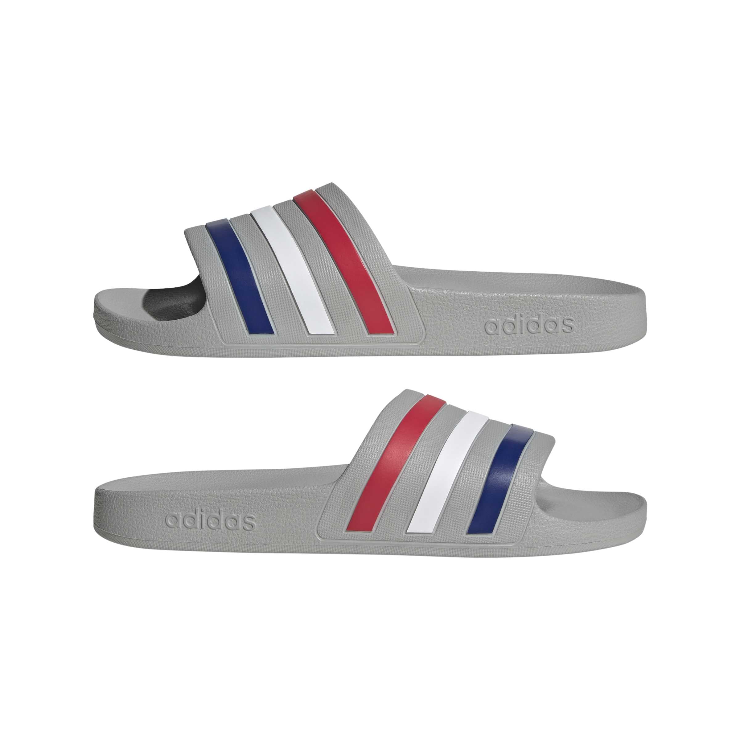 Description These Adilette Aqua Slides bring welcome comfort to tired feet. They have a one-piece molded EVA upper and a plush Cloudfoam footbed. Hit the shower in adidas 3-Stripes.