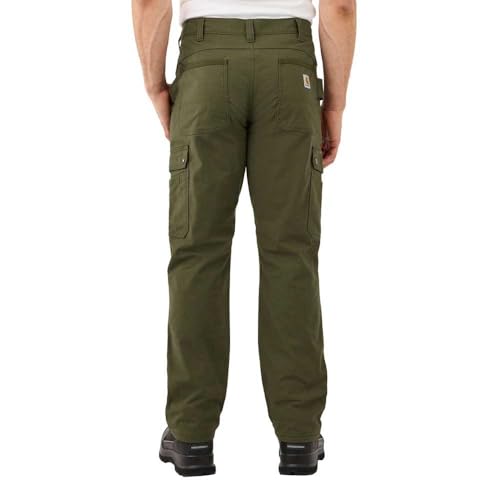 Description Built to move in cold conditions, these men's Carhartt cargo work pants are fleece-lined for warmth with plenty of stretch for full mobility. Large thigh pockets plus utility pockets offer easy-access storage. High-wear pocket areas are reinforced with Corduraยฎ, and double-front legs accepts knee pads. Their relaxed fit offers a little extra room through the seat and thigh with a straight leg opening.