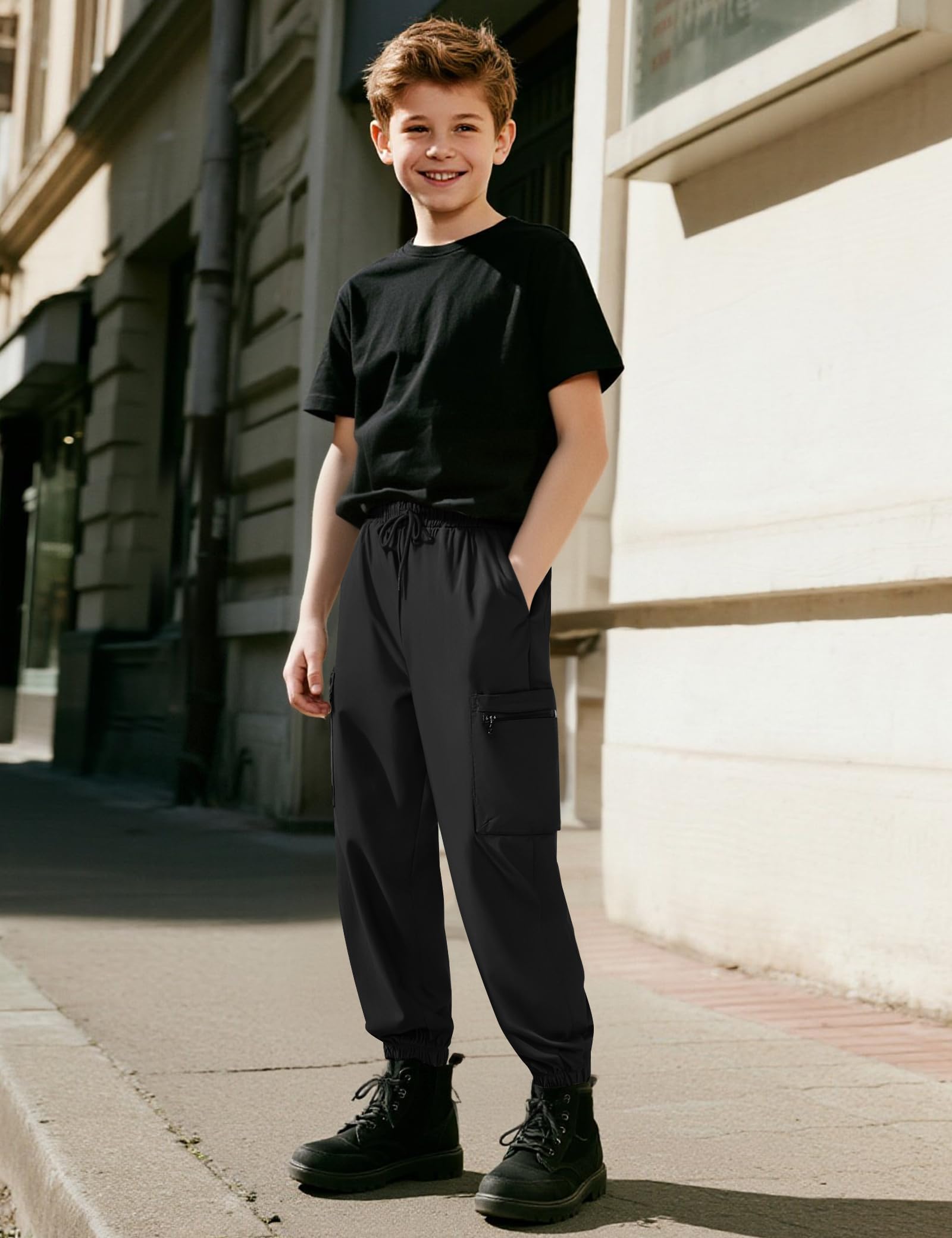 Multi Pockets Design -- The boys joggers have stylish and functional pocket design. Completing with two side pockets, two cargo pockets, two zipper pockets outside the cargo pockets. Offering convenient storage for small items that boys need to carry.