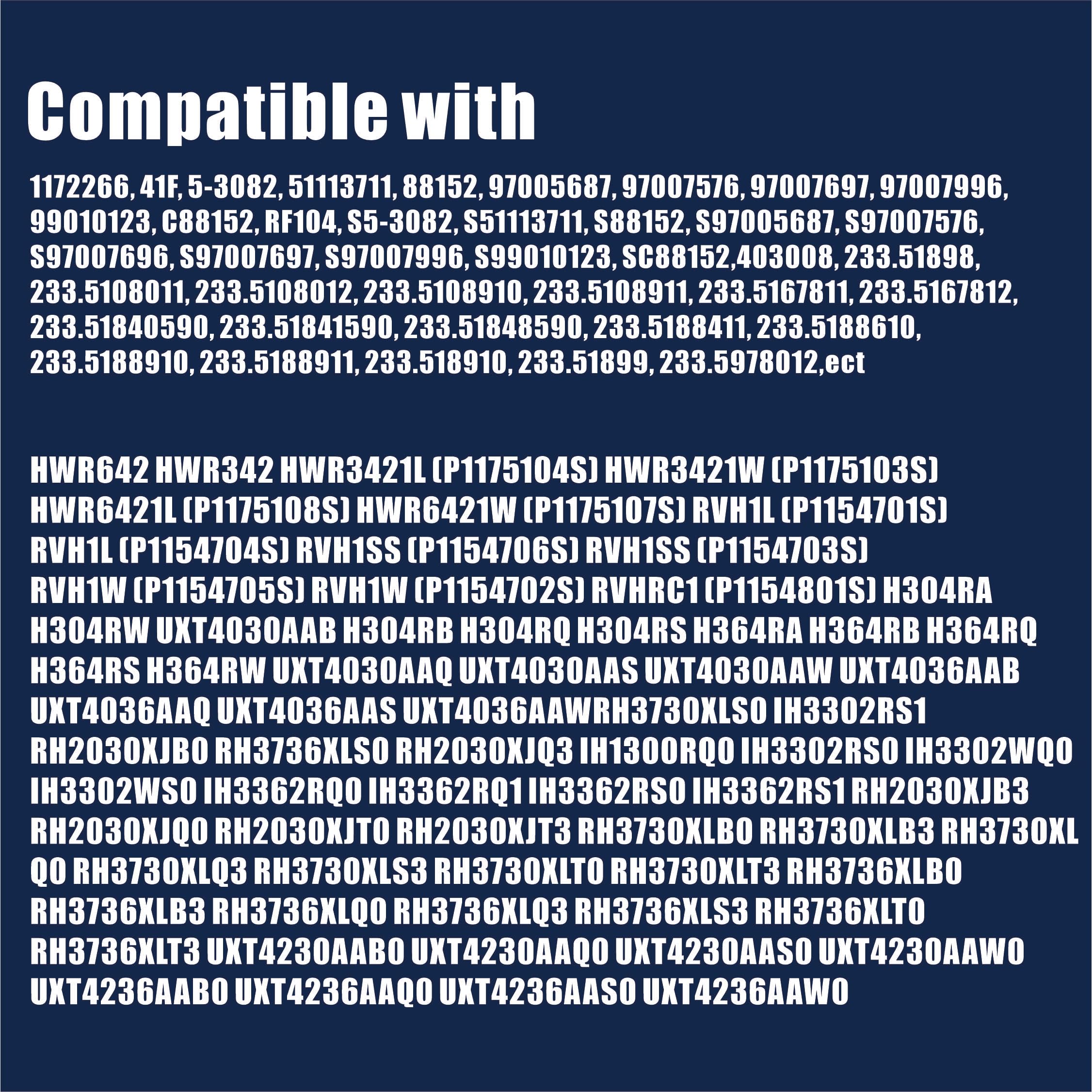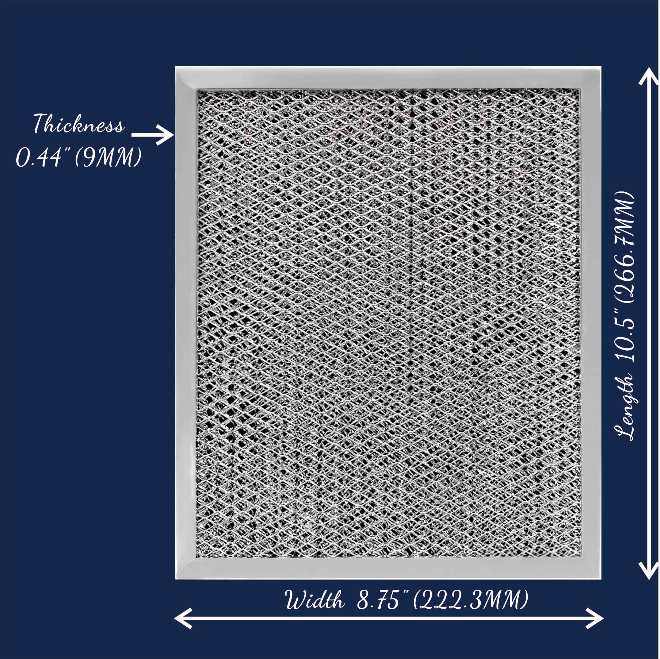 Perfect Fit and Compatibility: Our range hood filter replacement, specifically crafted for models like 41F, 97007696, and 97005687, Compatible for Broan Nutone range hoods, offers a seamless fit. It's not just limited to these; this stove vent filter is also compatible with a wide array of other brands such as for Kenmore, for Maytag, for Jenn-Air, etc. With numerous models like the QT20000 series and RL6100 series covered, and precise dimensions of 8-3/4" x 10-1/2" x 3/8" . Whether you're looking for a hood range filter replacement or a fit for your filtro para campana de cocina, this filter ensures a snug fit. Compatible with 1172266, 41F, 5-3082, 51113711, 88152, 97005687, 97007576, 97007697, 97007996, 99010123, C88152, RF104, S5-3082, S51113711, S88152, S97005687, S97007576, S97007696, S97007697, S97007996, S99010123, SC88152,403008, 233.51898, 233.5108011, 233.5108012, 233.5108910, 233.5108911, 233.5167811, 233.5167812, 233.51840590, 233.51841590, 233.51848590, 233.5188411, 233.5188610, 233.5188910, 233.5188911, 233.518910, 233.51899, 233.5978012,ect HWR642 HWR342 HWR3421L (P1175104S) HWR3421W (P1175103S) HWR6421L (P1175108S) HWR6421W (P1175107S) RVH1L (P1154701S) RVH1L (P1154704S) RVH1SS (P1154706S) RVH1SS (P1154703S) RVH1W (P1154705S) RVH1W (P1154702S) RVHRC1 (P1154801S) H304RA H304RW UXT4030AAB H304RB H304RQ H304RS H364RA H364RB H364RQ H364RS H364RW UXT4030AAQ UXT4030AAS UXT4030AAW UXT4036AAB UXT4036AAQ UXT4036AAS UXT4036AAWRH3730XLS0 IH3302RS1 RH2030XJB0 RH3736XLS0 RH2030XJQ3 IH1300RQ0 IH3302RS0 IH3302WQ0 IH3302WS0 IH3362RQ0 IH3362RQ1 IH3362RS0 IH3362RS1 RH2030XJB3 RH2030XJQ0 RH2030XJT0 RH2030XJT3 RH3730XLB0 RH3730XLB3 RH3730XL Q0 RH3730XLQ3 RH3730XLS3 RH3730XLT0 RH3730XLT3 RH3736XLB0 RH3736XLB3 RH3736XLQ0 RH3736XLQ3 RH3736XLS3 RH3736XLT0 RH3736XLT3 UXT4230AAB0 UXT4230AAQ0 UXT4230AAS0 UXT4230AAW0 UXT4236AAB0 UXT4236AAQ0 UXT4236AAS0 UXT4236AAW0 Perfect Fit and Compatibility: Our range hood filter replacement, specifically crafted for models like 41F, 97007696, and 97005687, Compatible for Broan Nutone range hoods, offers a seamless fit. It's not just limited to these; this stove vent filter is also compatible with a wide array of other brands such as for Kenmore, for Maytag, for Jenn-Air, etc. With numerous models like the QT20000 series and RL6100 series covered, and precise dimensions of 8-3/4" x 10-1/2" x 3/8" . Whether you're looking for a hood range filter replacement or a fit for your filtro para campana de cocina, this filter ensures a snug fit. Superior Filtration Performance: This range hood grease filter features a premium combo design. Combining a grease mesh and charcoal carbon, it functions as an outstanding kitchen hood filter. It effectively traps grease, smoke, odors, and other particles, making it a top-notch oven vent filter. The activated charcoal layer in this hood vent filter acts as a natural odor eliminator, absorbing odors from food, thus keeping your kitchen air clean and fresh. It's an ideal choice for those seeking a stove hood vent filter or hood filters for kitchen that can handle the toughest cooking smells. Durable and Long-lasting: Constructed from high-quality domestic materials, this stove fan filter is made of durable aluminum mesh and activated charcoal carbon. It's built to withstand extended use while maintaining optimal air quality, outlasting traditional range hood filters. By preventing clogs and buildup, it significantly improves the performance of your range hood, making it a reliable oven hood vent filter for long-term use. Whether you refer to it as a vent hood filter or a filtro para extractor de cocina, its durability is undeniable. Easy Installation and Maintenance: Installing this range hood filter is a breeze. As a stove exhaust fan filter, it requires no tools – simply remove the old filter and replace it with the new one. For the best results, especially with charcoal filters in our kitchen vent filter combo, we recommend replacing them every 6 months. This ensures that your range hood filter replacement continues to function at its peak, providing you with a hassle-free experience and a clean kitchen environment.