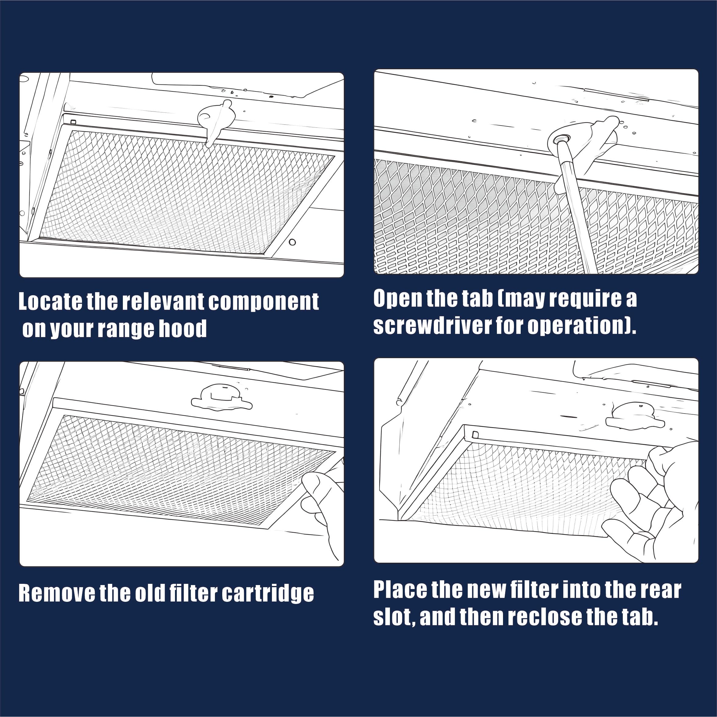 Easy Installation and Maintenance: Installing this range hood filter is a breeze. As a stove exhaust fan filter, it requires no tools – simply remove the old filter and replace it with the new one. For the best results, especially with charcoal filters in our kitchen vent filter combo, we recommend replacing them every 6 months. This ensures that your range hood filter replacement continues to function at its peak, providing you with a hassle-free experience and a clean kitchen environment.