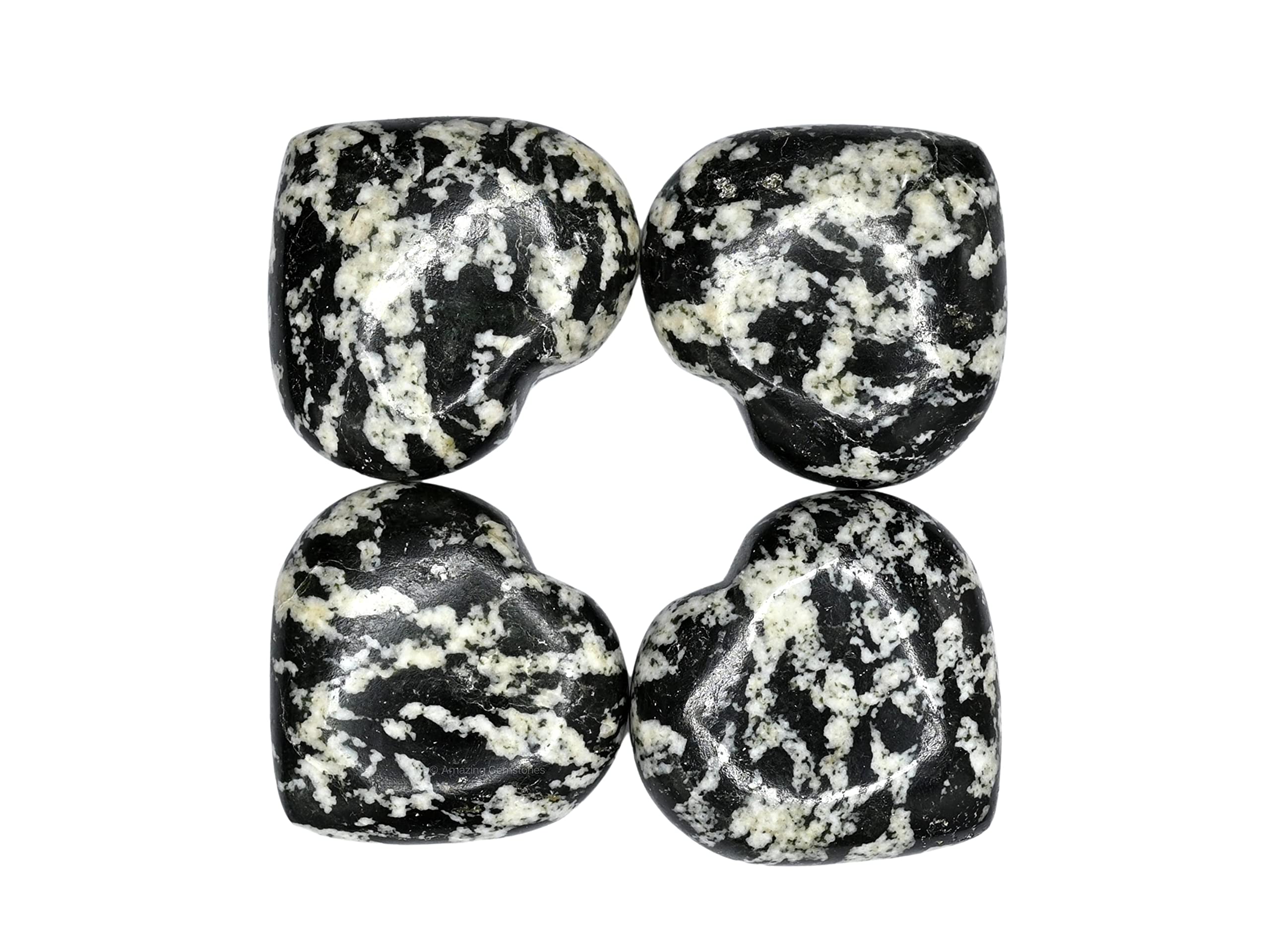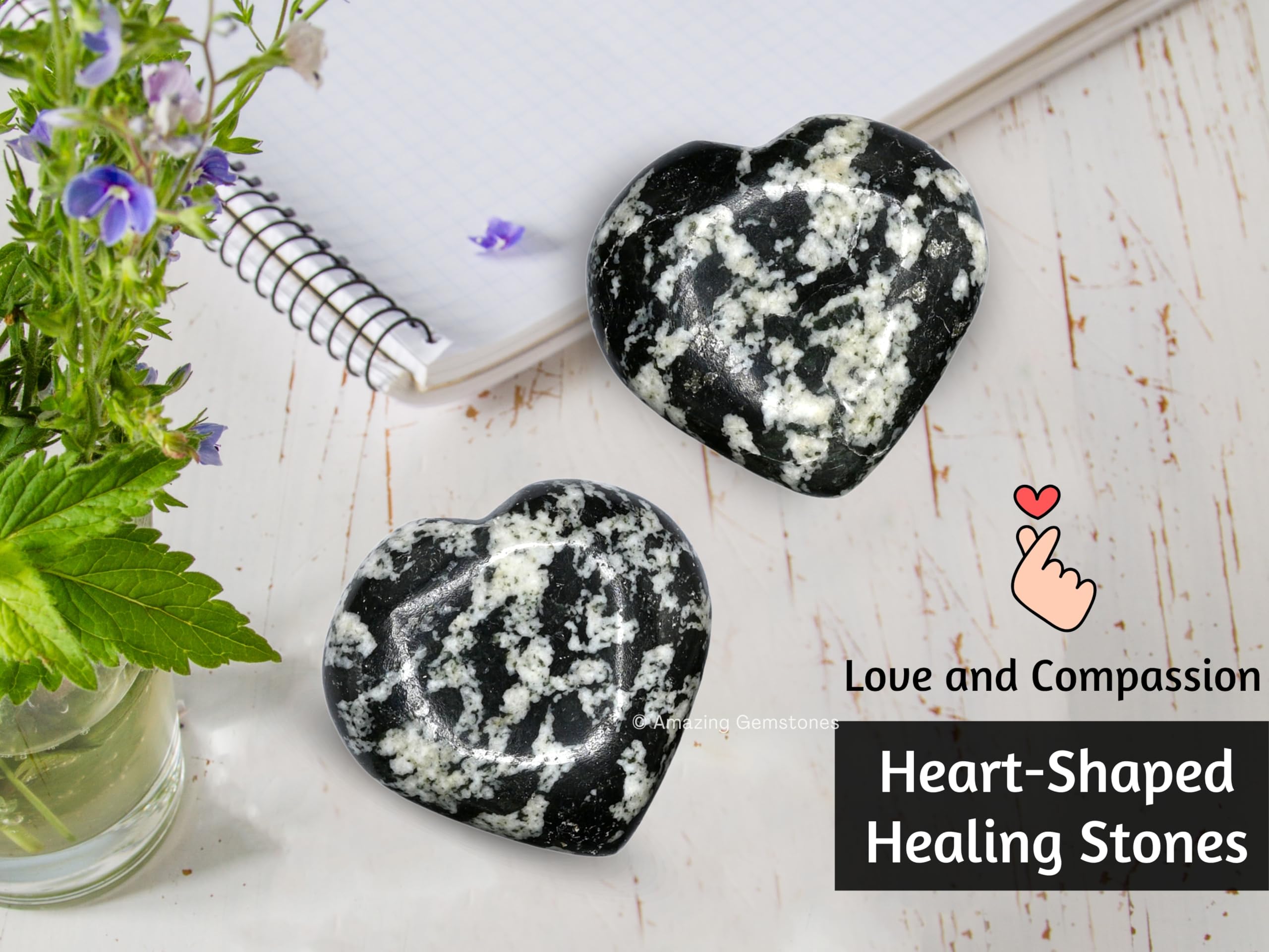 Crystal Black & White Tourmaline Heart Palm Worry Stones are polished heart shaped stones that can be used for Back, Neck, Face and Feet Massage therapy, Chakra Balancing, Reiki Healing, Crystal Grid Meditation and many other esoteric healing practices.