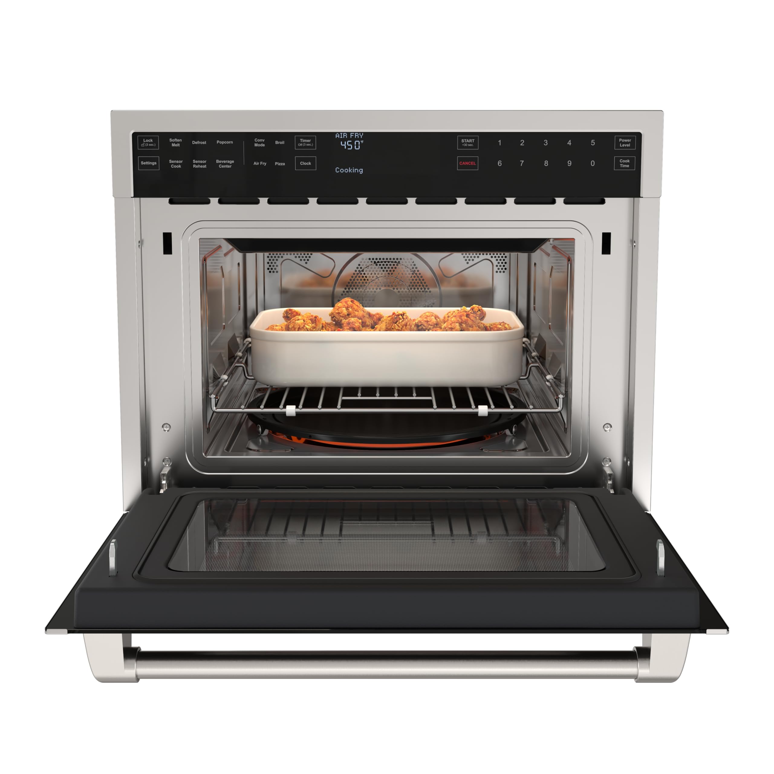Versatile 3-in-1 Cooking Technology: This appliance functions as a microwave, convection oven, and air fryer, allowing you to bake, broil, roast, crisp, and reheat with one appliance. It offers a wide temperature range of 175°F to 450°F for precision cooking.