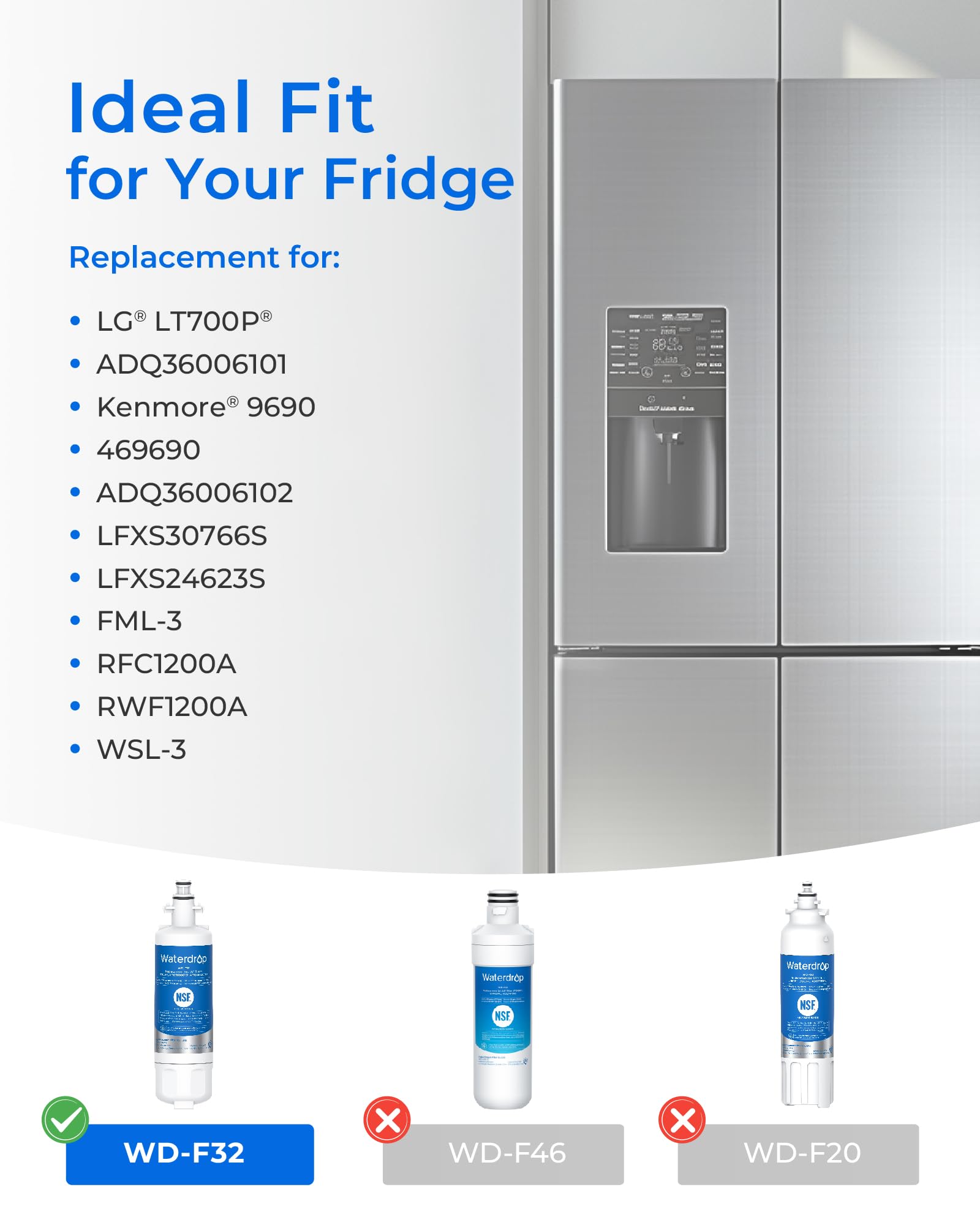 [Replacement for models] This filter replacement for: LG LT700P, LT700PCS, ADQ36006101, ADQ36006101-S, ADQ36006101S, ADQ36006102, ADQ36006102-S, ADQ36006102S, 9690, 46-9690, KENMORE 469690, WSL-3, WF700, WLF-01, RFC1200A, CWMF041, BLS LT700P, APF1400, PL-500, WF-117, R-9690, WD-F32, OP-1200A.