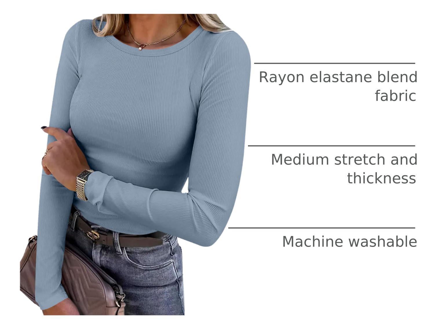Features - Our long sleeve crew neck design is versatile and suitable for many occasions - wear it to school, the gym, the beach or just for everyday casual wear. The slim fit highlights your perfect figure, making you look confident and stylish wherever you go. Our tops are slim, comfortable, lightweight and very flattering, making them a must-have in your wardrobe.