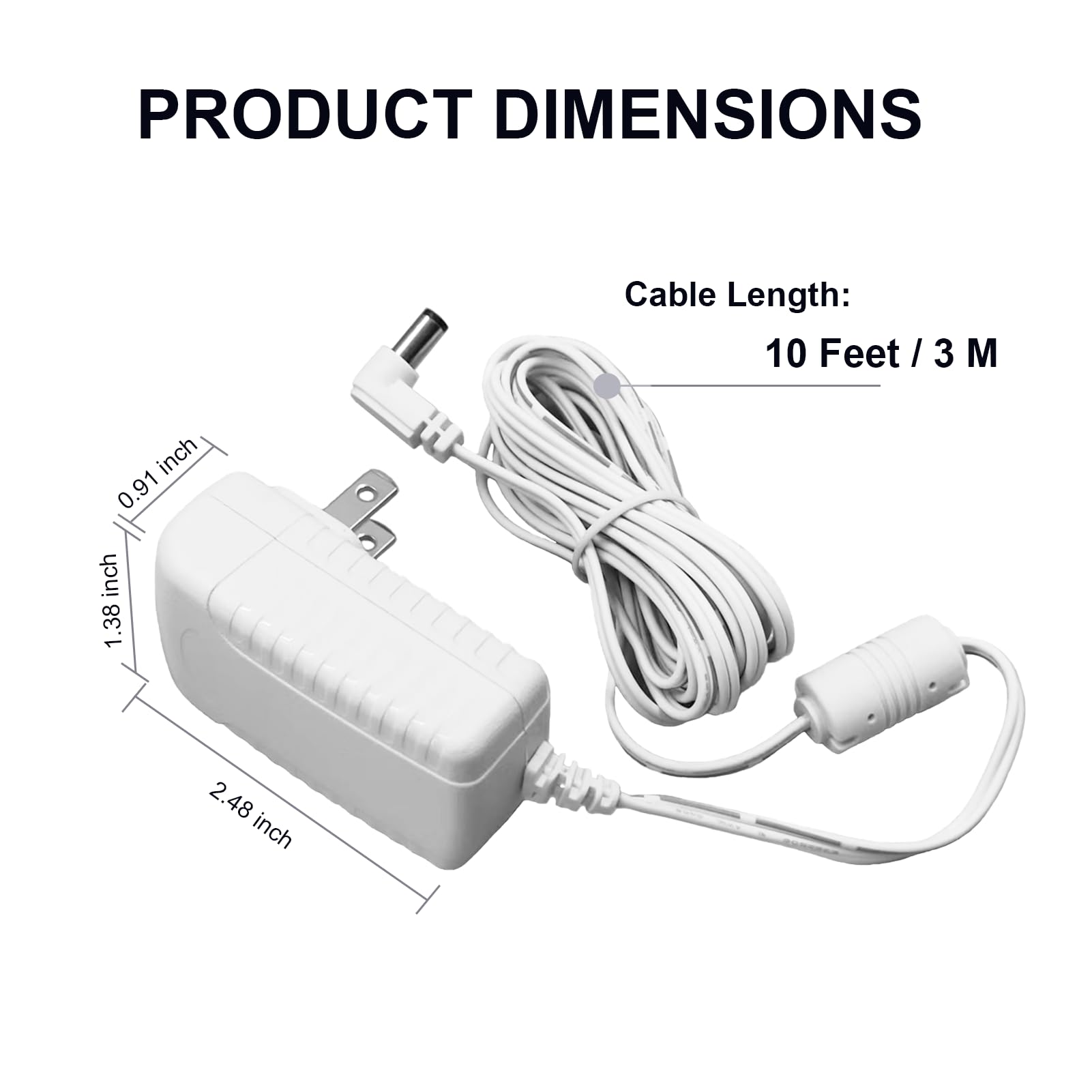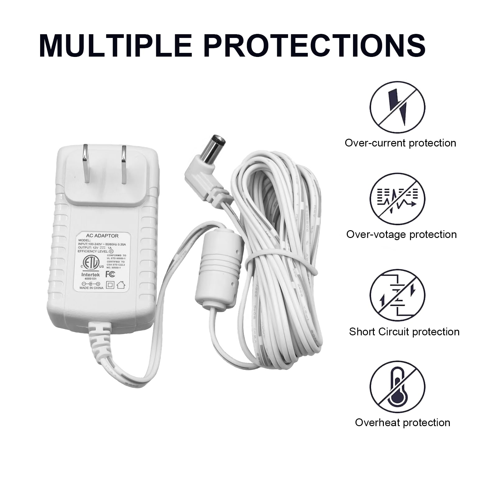 SPECIFICATIONS:Input:AC 100-240V, 50/60Hz; Output:12V 1A; Cable length:10 Feet / 3M; US, CA, MX, BR wall plug