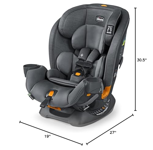 The Chicco OneFit ClearTex All-in-One Car Seat fits your child, vehicle and life โ from birth through booster. Designed with innovative installation features, OneFit is easy to install as you transition from a rear-facing harness baby car seat (5-40 lbs.) to forward-facing toddler car seat (25-65 lbs.) to harness booster car seat (40-100 lbs.). OneFit ClearTex is GREENGUARD Gold Certified for low chemical emissions, contributing to healthier air quality around your child. Fits Your Child Designed for superior child comfort, OneFit provides extra rear-facing legroom and multiple recline options in every mode of use. As a car seat for newborns, OneFit accommodates tiny passengers with a removable head and body support insert for infants weighing 5-11 lbs. DuoGuard offers two layers of protection with a steel-reinforced frame and EPS energy-absorbing foam that surround the head and torso. With the widest range of height adjustments, the 10-position easy-adjust headrest accommodates maximum growth for each mode of use. Fits Your Vehicle With its slim design and space-saving features, this convertible car seat takes up less space in the backseat without compromising comfort for an ideal travel car seat. The two CupFolders conveniently fold in when not in use to maximize space. Innovative installation features like premium LATCH connectors and a SuperCinch Force Multiplying LATCH Tightener make Chicco car seats the easiest to install correctly โ every time. RideRight Bubble Level-Indicators and the 9-position ReclineSure Spring-Loaded Leveling Foot provide improved vehicle fit and child comfort. The LockSure Steel-Reinforced Seat Belt Locking System helps to ensure a secure installation using the vehicle seat belt with an easy thread belt path and built-in lock-offs. Fits Your Life ClearTex products meet federal car safety flammability standards without flame retardant chemical treatments. ClearTex extends to all softgoods that surround your child: foam, inserts, comfort kitsโeven labels. The dishwasher-safe CupFolders make cleaning easy and convenient.