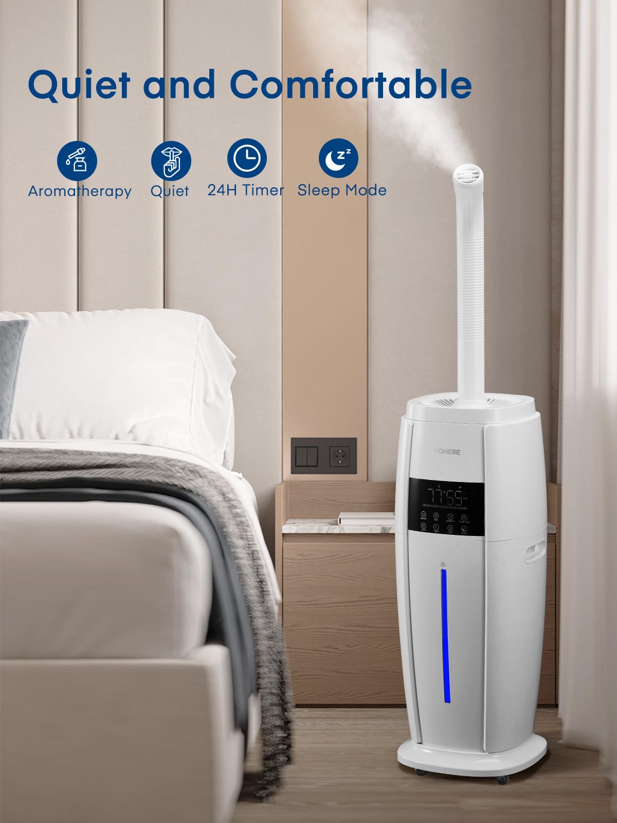Powerful Mist Large Humidifier for Whole House: This 4.8-gallon large room humidifier is equipped with 3 powerful atomisers to provide more efficient, higher, and uniform humidification. It offers 300% of the mist output for instant relief from dryness. FOHERE large room humidifier can humidify up to 1500 square feet, making it suitable for living rooms, whole houses, greenhouses, warehouses, offices, and more.