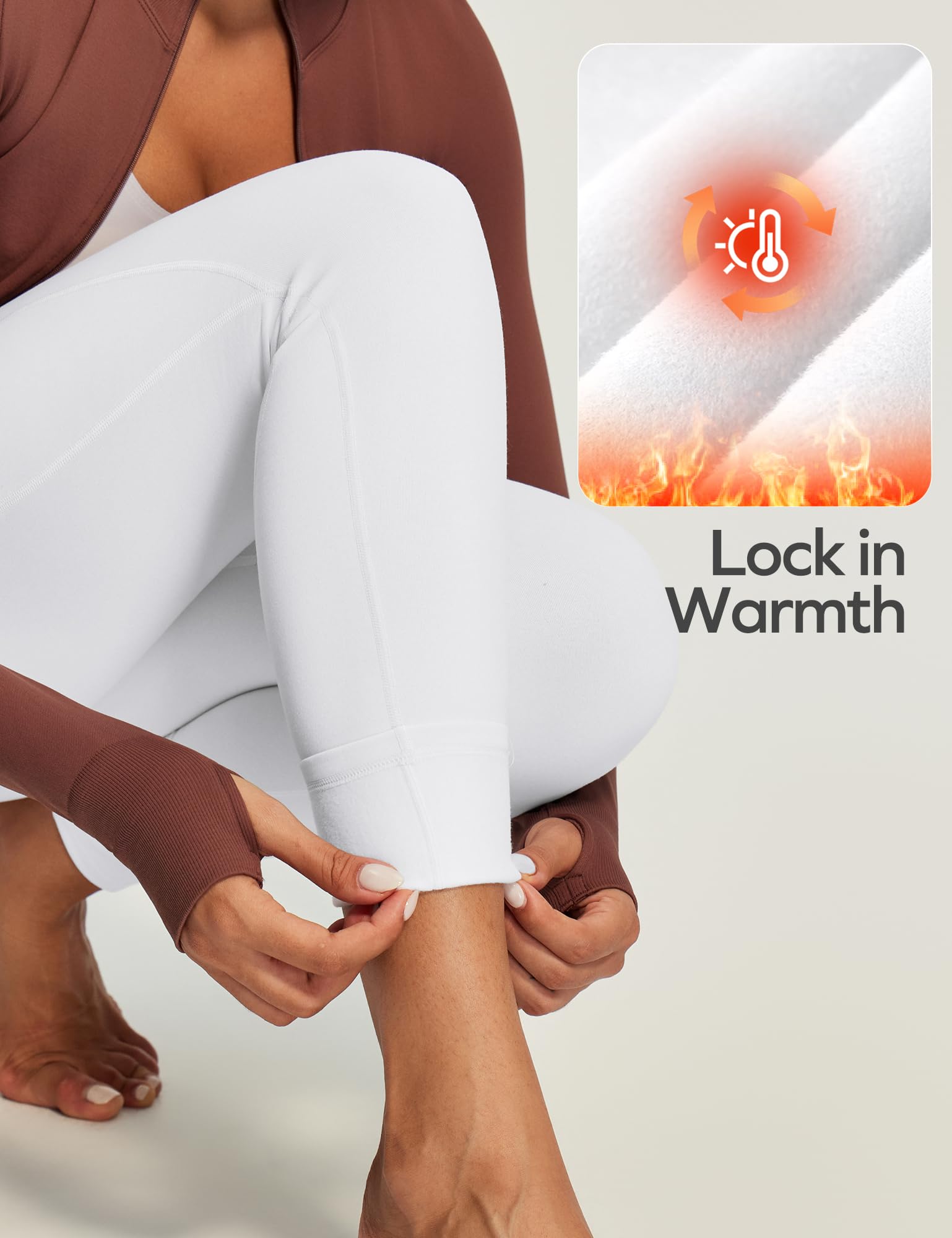 Squat-Proof Stretchy Fabric : Engineered with high-tech 4-way stretch material for maximum flexibility and lasting warmth. The moisture-wicking fabric efficiently pulls sweat away while locking in heat, making these thermal leggings for women reliable whether stretching, bending, or squatting—full support without slipping.