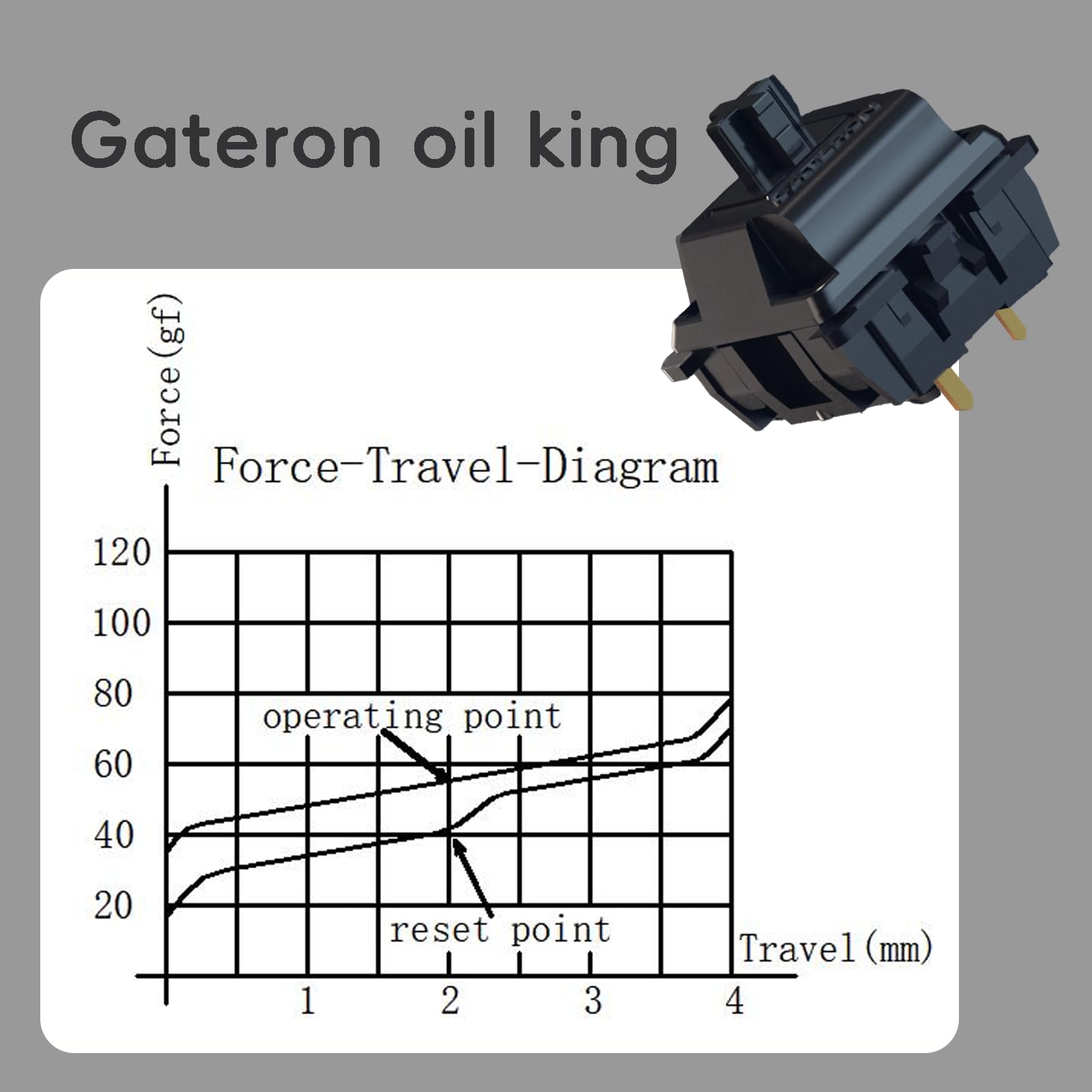 Oil King Switch:5-pin Linear Switch,Actuation Force:55gf±5gf,Bottom Force:65±10gf,Total travel:4mm Max,Life:60000000 cycles(min).
