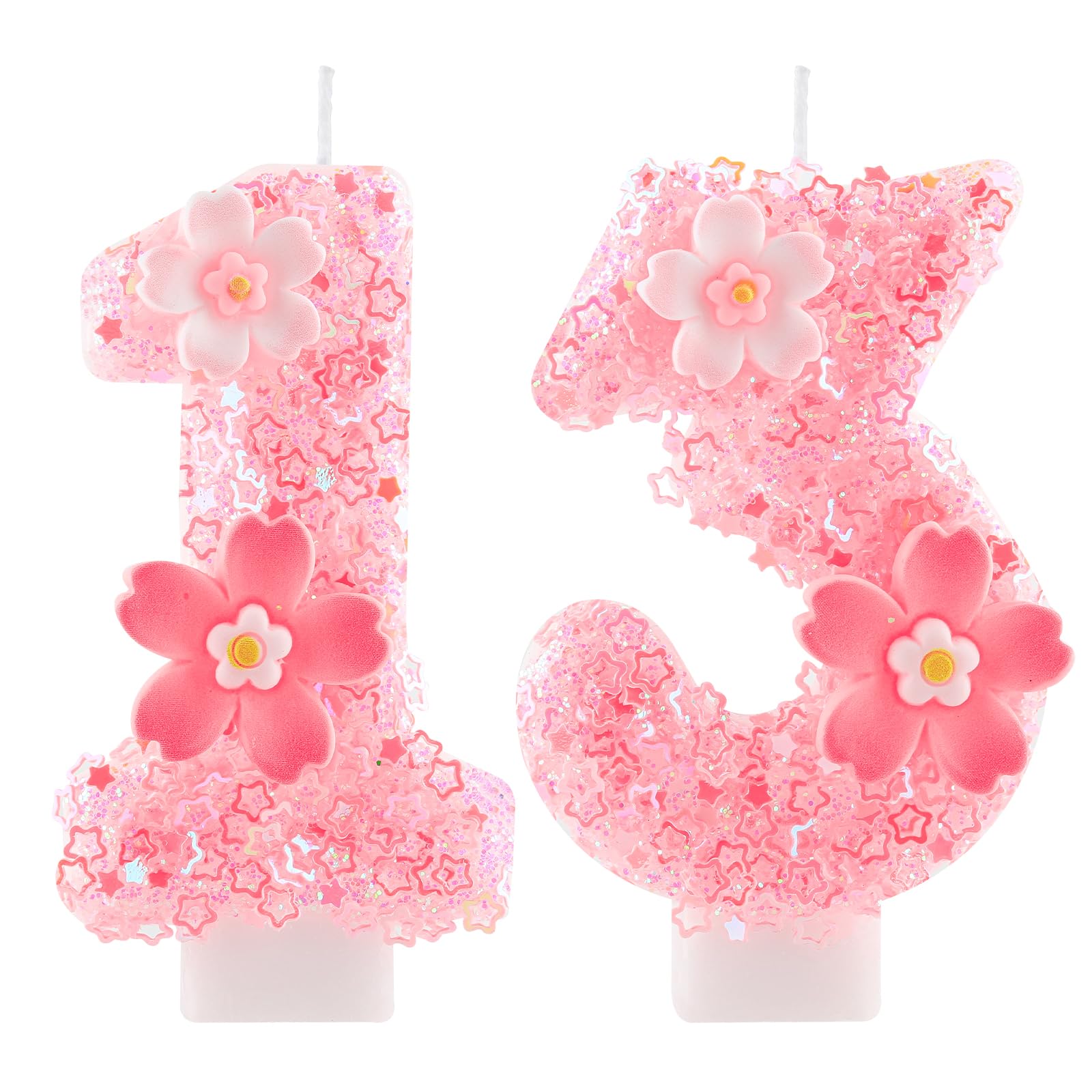 Hongplus Cherry Blossom Pink Number 13 Birthday Candle, 2.8in Cute Shiny Happy 13th Birthday Candle with Tray & Stick Girls 13 Candle for 13 Birthday Ideal Birthday Parties Cake Decoration & Gifts 3D Design Shinning Glitter Cherry Blossom Birthday Number Candles Features: Vivid Delicate appearance 3D visual sense: The pink cherry blossom happy birthday cake candles are meaningful for you to celebrate your girls spring pink birthday and nice cake topper decoration for embellishing your cake and cupcake,creating lovely atmosphere and adding a touch of elegant. Adapt to the venue: Ideal pink flower cake decoration for many occasions, such as girls 1st birthdays, pet birthdays, baby showers, anniversaries, retirement parties, family reunions, weddings, must-have items for party cake, bring you memorable and meaningful sweet party. Specifications: Quantity: 2 pieces Material: wax Candle length: approx. 7.1cm/2.8in Tray is approx. 2.8cm/1.1in in diameter Stick is about 6.3cm/2.48in long. Color: Pink Package includes: 1 x Shinning Pink Cherry Blossom Number 1 Birthday Candle for Girls Birthday Party Decoration1 x Shinning Pink Cherry Blossom Number 3 Birthday Candle for Girls Birthday Party Decoration Warm notices: Please allow little error on the size due to manual. Do not leave the lighted candles unattended. Please place candles out of reach of children. And please do not light candles on or near flammable materials. Please keep the candle away from the fire when not in use, when burning, adult's supervision is needed.