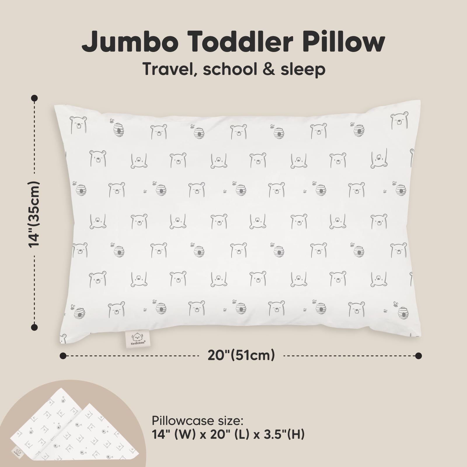 Ergonomically Designed – KeaBabies Jumbo Toddler Pillow 14x20, offers ergonomic support for healthy spinal alignment and all-night comfort. Note: Simply cold wash and tumble dry low to restore its fluffiness after opening from vacuum package.