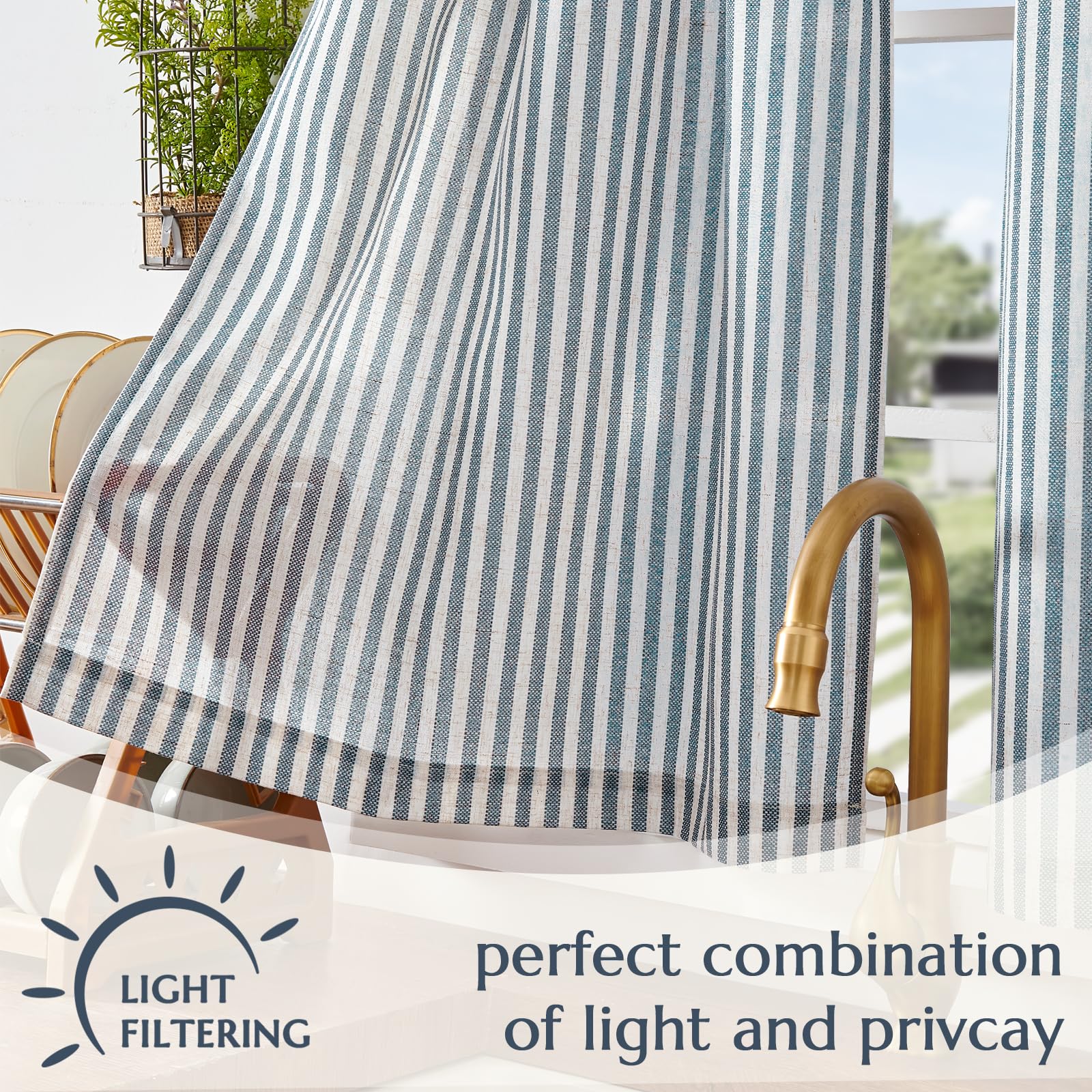 Rustic Striped Design: Evenly spaced vertical stripes give a neat, orderly look while subtly guiding the eye upward. The natural linen texture and gentle drape add understated charm, creating a clean and cozy feel for your space