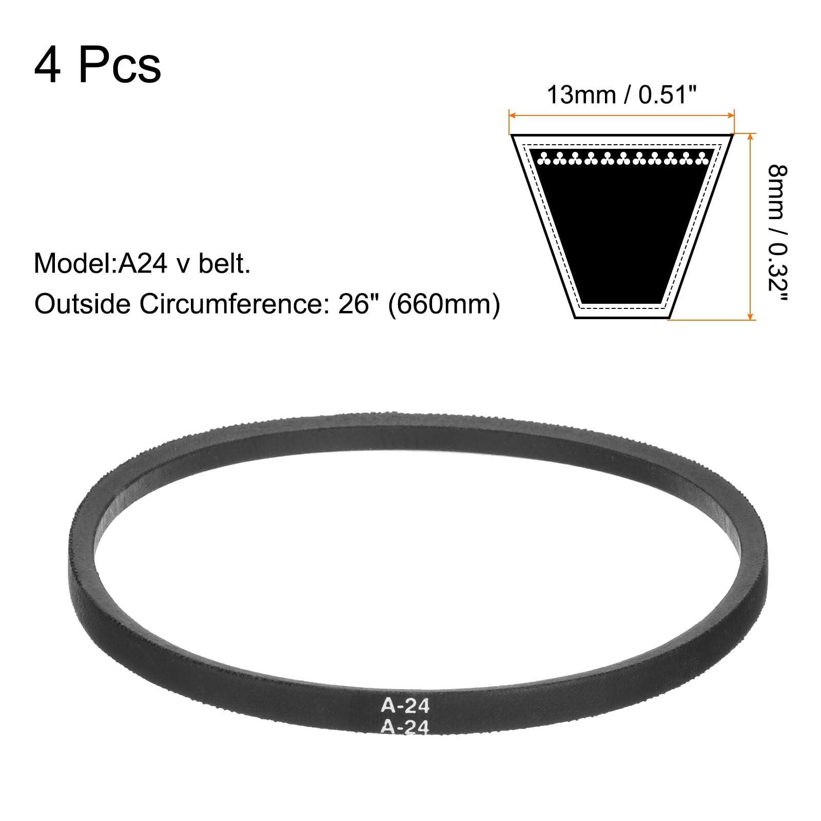 Model: A24 or 4L260 v belt. Inner Circumference: 24" (610mm); Outside Circumference: 26" (660mm).