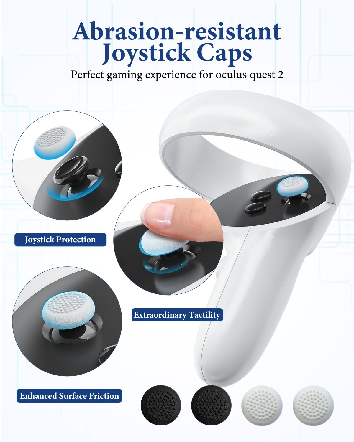 【 Head Strap for 0culus Quest 2 Product Sets Includes】Each Product Set includes 1 * Headstrap for 0culus quest 2, 2 *white Controller Joystick Thumb Grip Caps , and 2 *black Controller Thumbstick Caps. Easy-wear top compression rubber process+ high elastic breathable oxford cloth bandage, so you can use and storage more convenient, cloth material can be washed, breathable and soft. support quick set wear, the user in the virtual and reality between the natural switch.