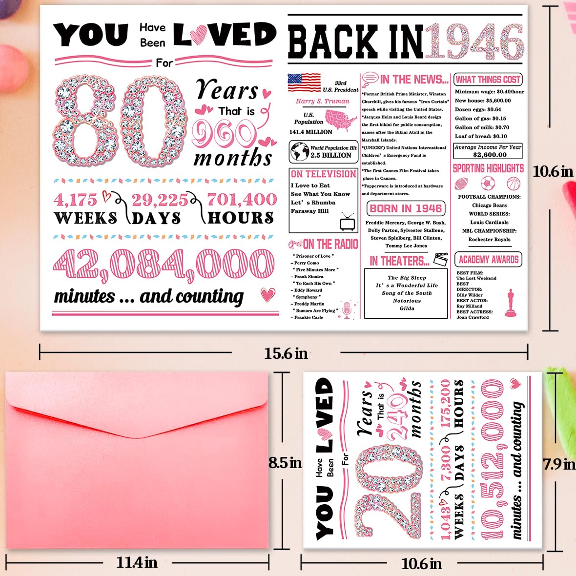 【80th Birthday Cards】 This card uniquely marks the exact years, months, and days your loved one has been loved, filled with the top songs, movies, sports, news, and celebrities from that special year, for a nostalgic walk down memory lane.