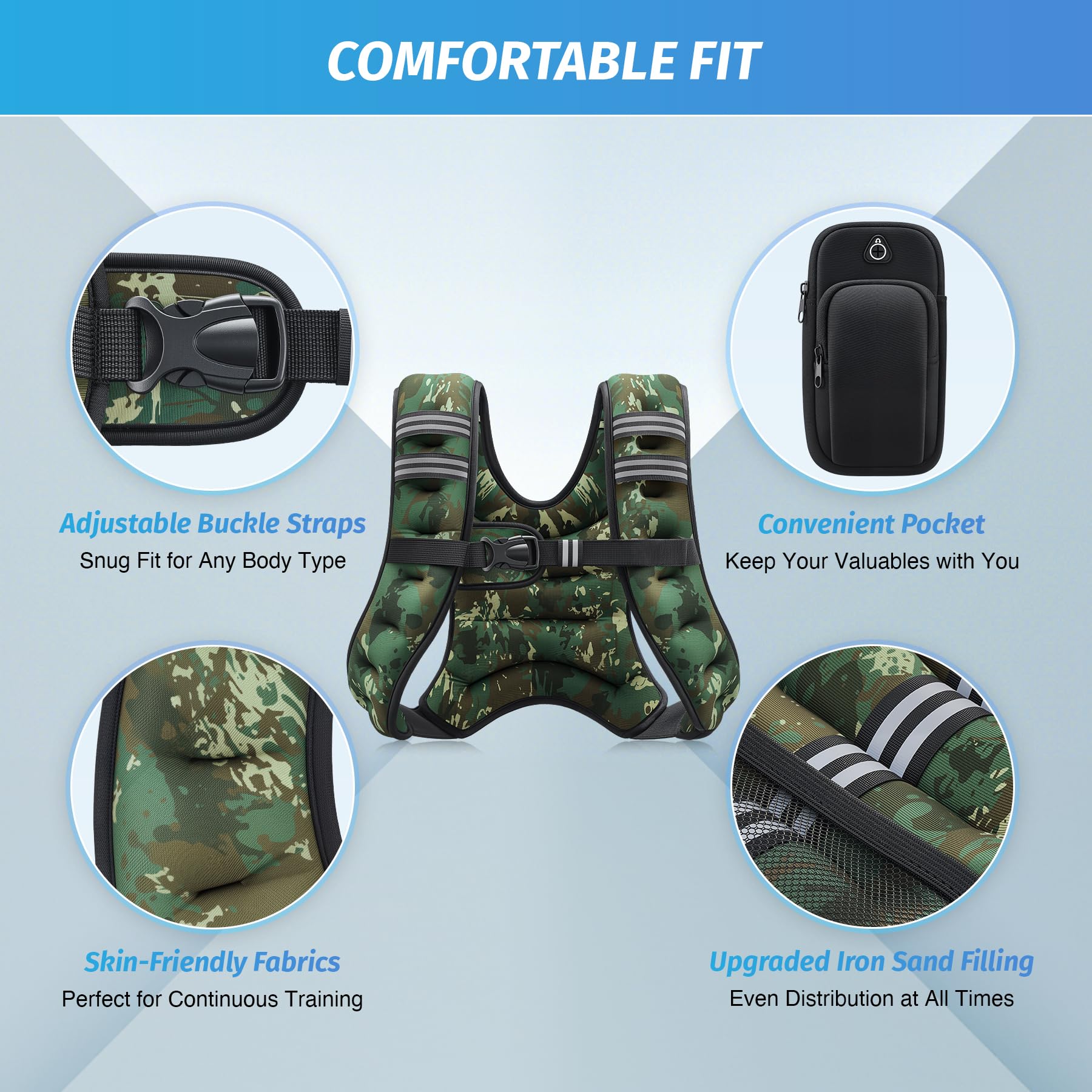 EVEN WEIGHT DISTRIBUTION: Evenly filled with iron sand, this well-balanced vest decreases injury risk while working out