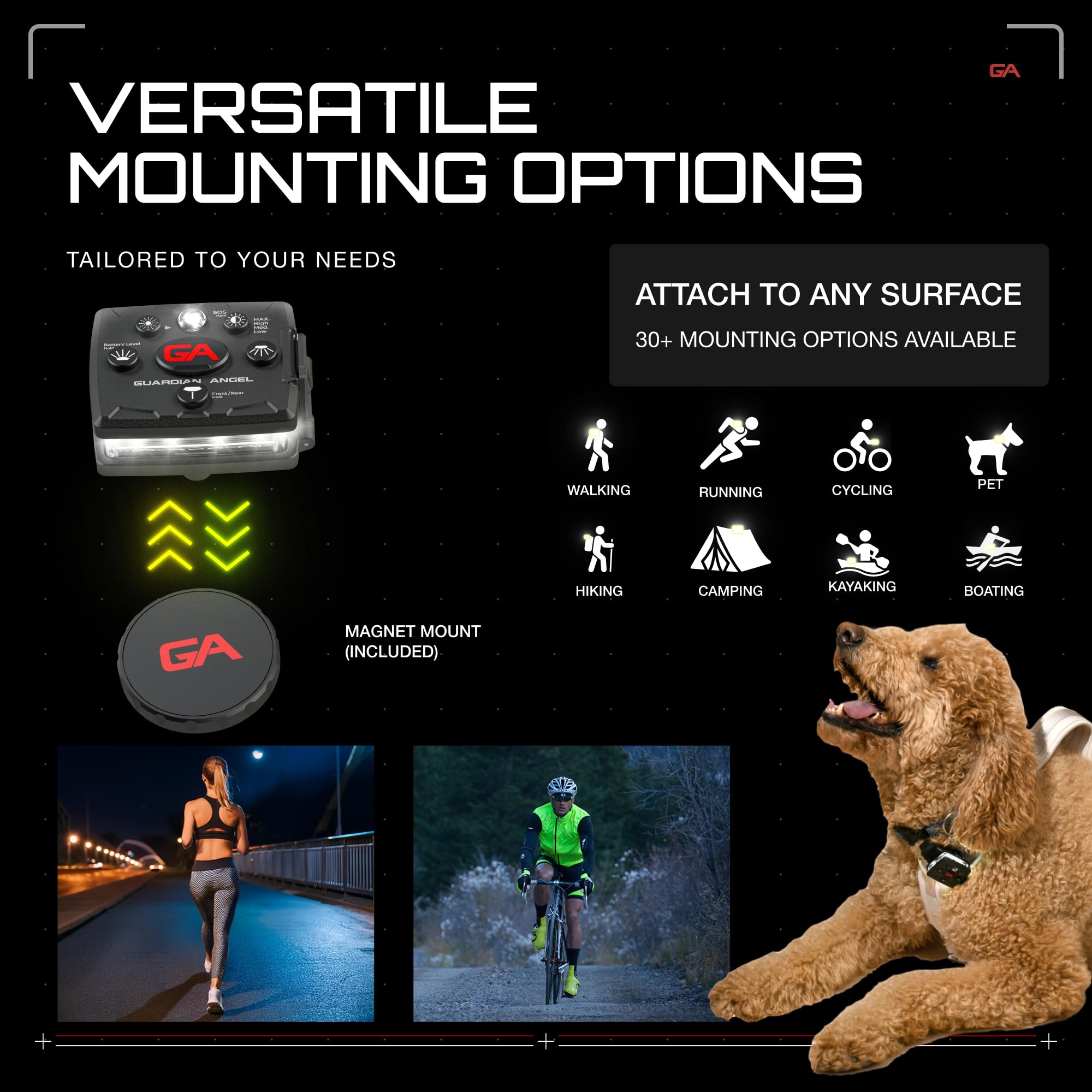 ๐ฉ๐ฒ๐ฟ๐๐ฎ๐๐ถ๐น๐ฒ ๐ ๐ผ๐๐ป๐๐ถ๐ป๐ด: Each Micro device features a built-in rare-Earth magnet that works with all GA mounts as part of the patented Magnet Mounting System. Securely attach to clothing with included magnetic mount, or secure in seconds to your bike, helmet, dog collar, leash, stroller, backpack, tent, vehicle and more with the purchase of activity-specific mounts. Two built-in screw mounts add extra security. One light offers 1,000s of uses and can be mounted to anything.