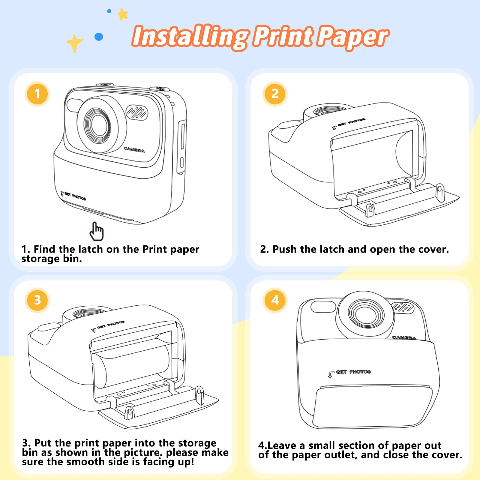 【Creative Instant Print Camera Special Designed for Kids】This kids digital camera with an instant printing function, you can obtain color photos store in SD Card while quickly printing black and white photos, our kids cameras are equipped with 2 print modes, grayscale and dot matrix printing, and 3 types of color depth printing. With Advanced thermal printing technology, no toner and BPA, it is very safe to kids. It helps Recording your child's happy growth, develop kids imagination and creativity, enhance the fun of parent-child interaction.