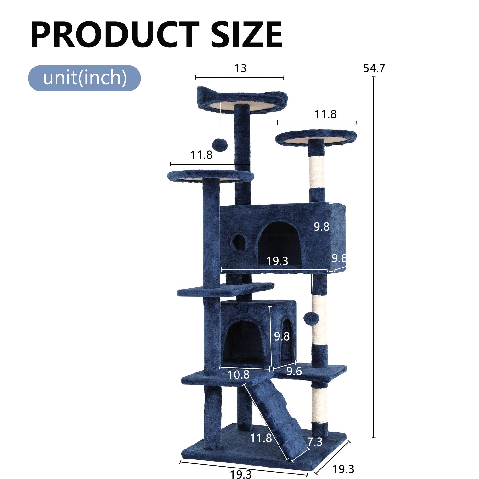 Our towering haven of a cat tree, with its finely detailed construction, offers your cherished companion the ideal balance of activity, comfort, and repose. This multi-level masterpiece, standing tall and robust, is made to fulfill all of your cat's innate impulses. Our cat tree offers a variety of inviting features to keep your pet happy and occupied for hours on end, from comfortable hideaways for seclusion and relaxation to plush perches for relaxing and surveying their territory. In addition to providing a safe haven for scratching, its scratching poles are covered in sturdy sisal rope, protecting your furniture from needless abrasion. Because of its modular form, which makes installation and modification simple, it blends in perfectly with any living area while bringing a touch of charm and elegance. Every cat lover's dream home must have a Cat Tree because it offers the ideal haven for your cat, whether they are playing, lounging, or just curled up for a good night's sleep.Cat Tree;Cat Tower;Cat Scratching Post;Cat Tower for Indoor Cats;Cat Tree for Indoor Cats