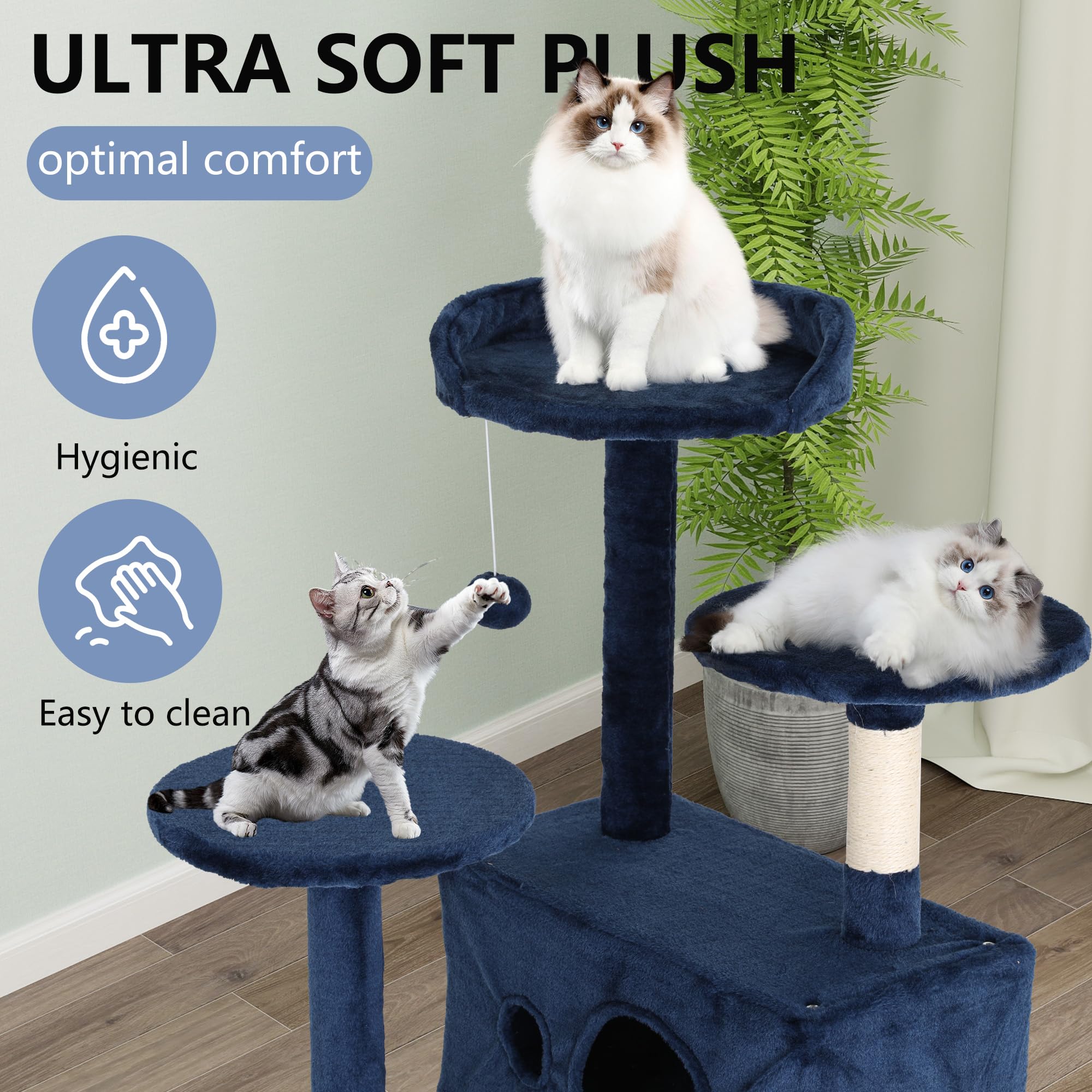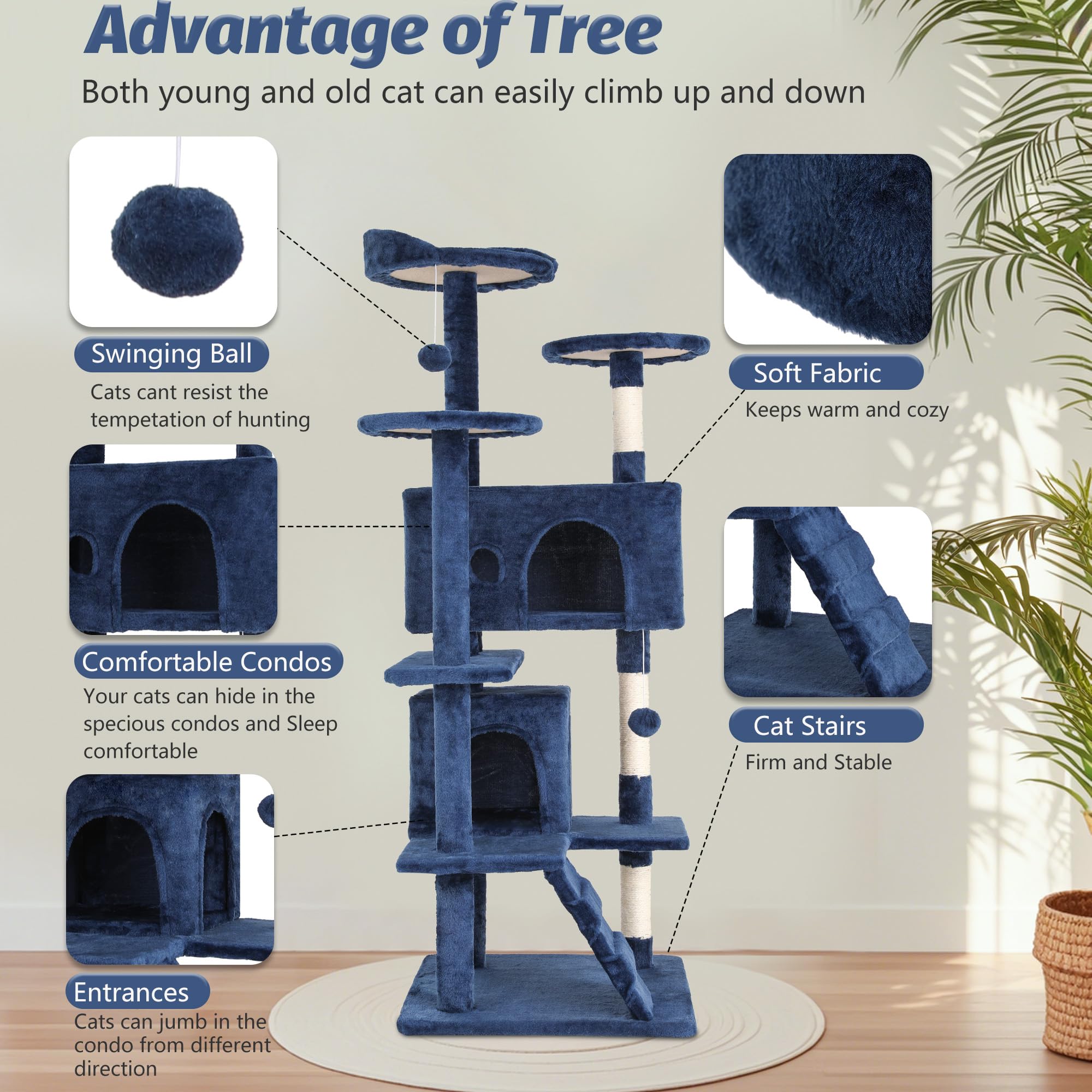 MULTI-LEVEL CAT TREE TOWER: This cat tree offers perches, ladders, and a cozy cat condo, creating the ultimate playground where cats of all ages can climb, scratch, nap, and explore freely.