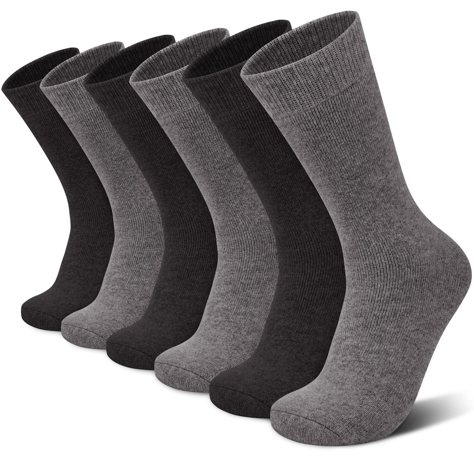 Premium Merino Wool Blend: Made with a high-quality blend of 53% Merino wool, 24% cotton, 16% polyester, and 7% spandex, these thermal dress crew men's socks offer the perfect balance of warmth, breathability, and stretch. The mid-weight knit provides natural insulation—ideal for cold mornings, air-conditioned offices, or everyday wear.