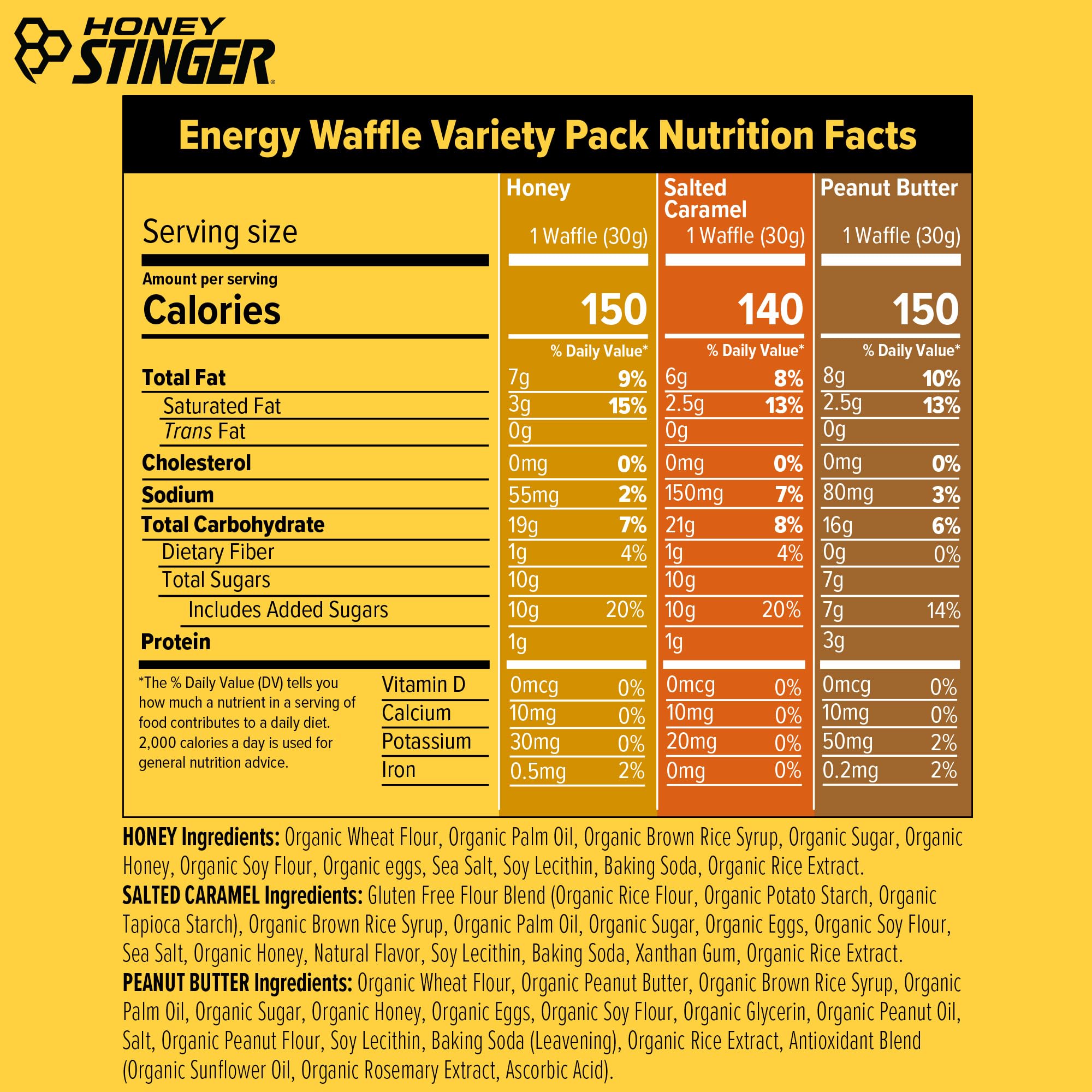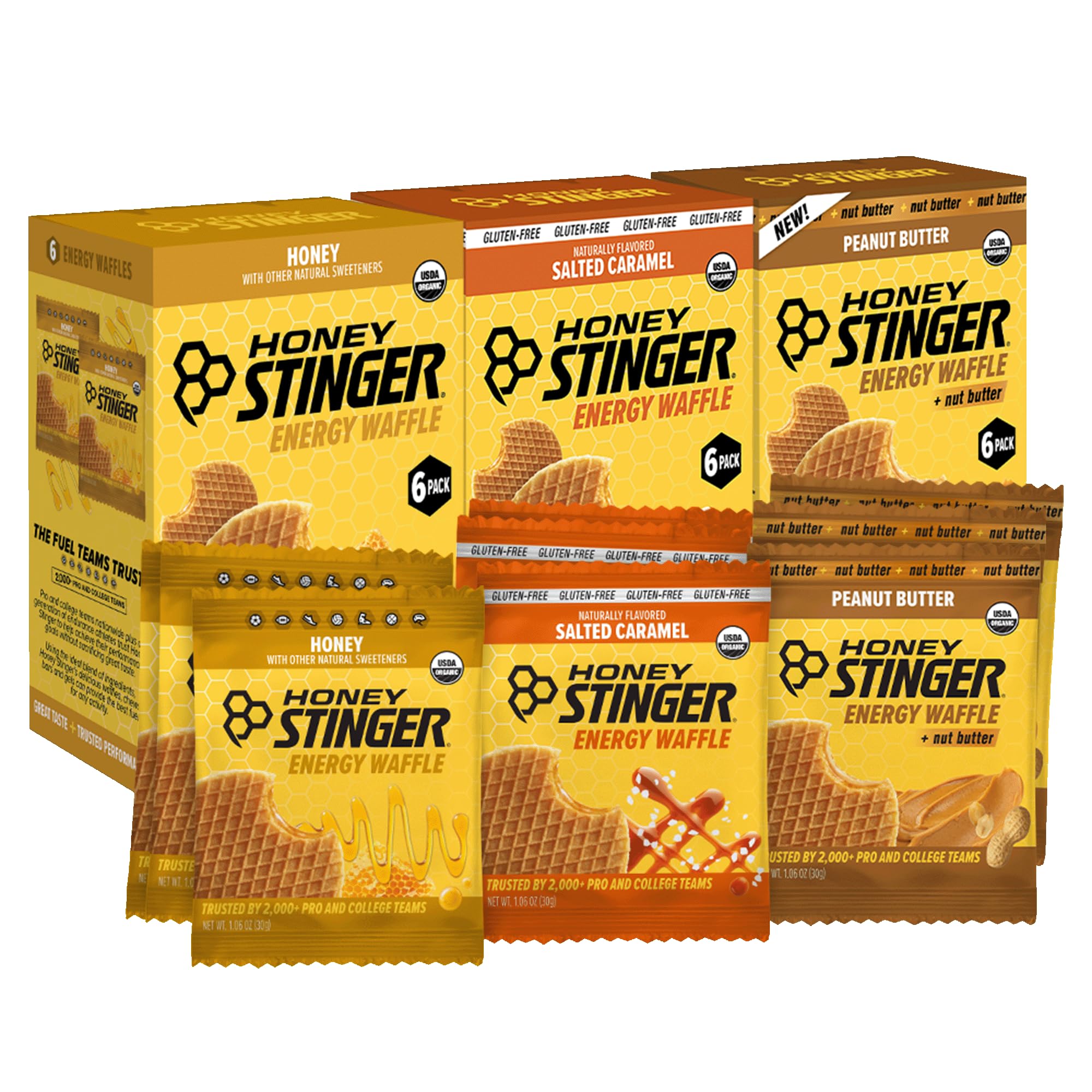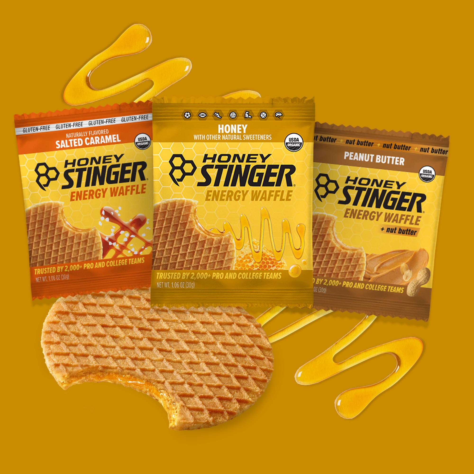 Try all our best selling energy waffles. Honey is the OG that started it all along with delicious Salted Caramel and one of our newest additions Peanut Butter! Perfectly sweet honey-infused filling between soft-baked waffles. The fuel you need for sustained energy to meet any challenge.