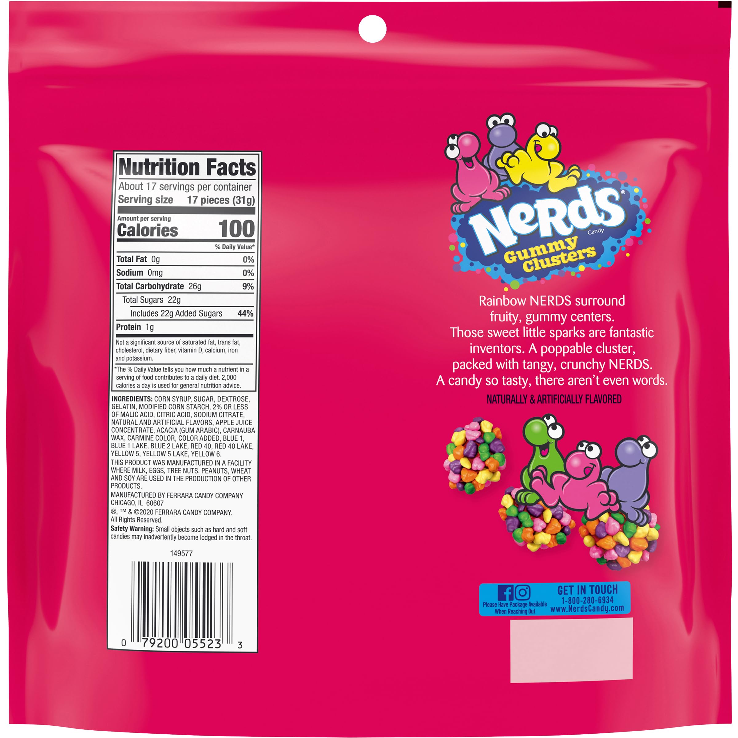 Crunchy, gummy, tangy — it's all coming together to provide a truly craveable experience in every bite of NERDS Gummy Clusters. Candy lovers have been waiting for this one-of-a-kind poppable treat, with Rainbow NERDS candy surrounding a fruity gummy center. Experience the delectable candy revolution. NERDS Gummy Clusters candy deliver multiple textures and flavors, taking hungry fans on a taste-filled journey as they chew. This candy fuels fun for every occasion, so what are you waiting for? Haven’t we told you just enough about NERDS Gummy Clusters to convince you to treat yourself? Go ahead, buy it: NERDS Gummy Clusters. Give the kids the perfect treat for when they go back to school with these NERDS Gummy Clusters. These crunchy and gummy fruity candies are the perfect treat idea for when they come home after a long school day. NERDS Gummy Clusters are part of the NERDS family. Choose from NERDS Gummy Clusters to NERDS Rope Candy or our crunchy Big Chewy NERDS, with flavors ranging from sweet to tangy. Try out all the varieties! NERDS take you on a sensory adventure. Everyone remembers the out-of-the-world experience of their first taste of NERDS.