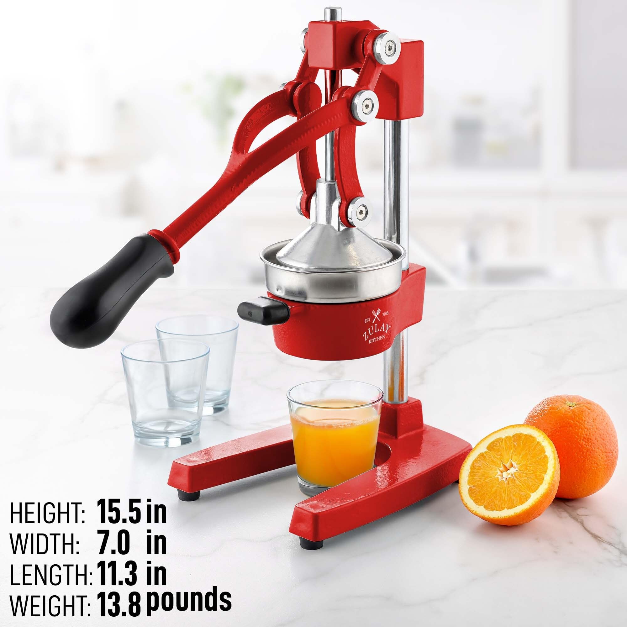 STURDY AND DURABLE MATERIAL: This manual juicer is made of heavy-duty cast iron that can easily withstand the pressure from continuous pressing for years to come. The leverage mechanism allows a one-time easy pull to get all the juice out. Our citrus press is designed with a heavy rubberized base to firmly keep it in place without the fear of falling, tipping, or sliding off the counter. This hand juicer is great for both professional and at-home use.