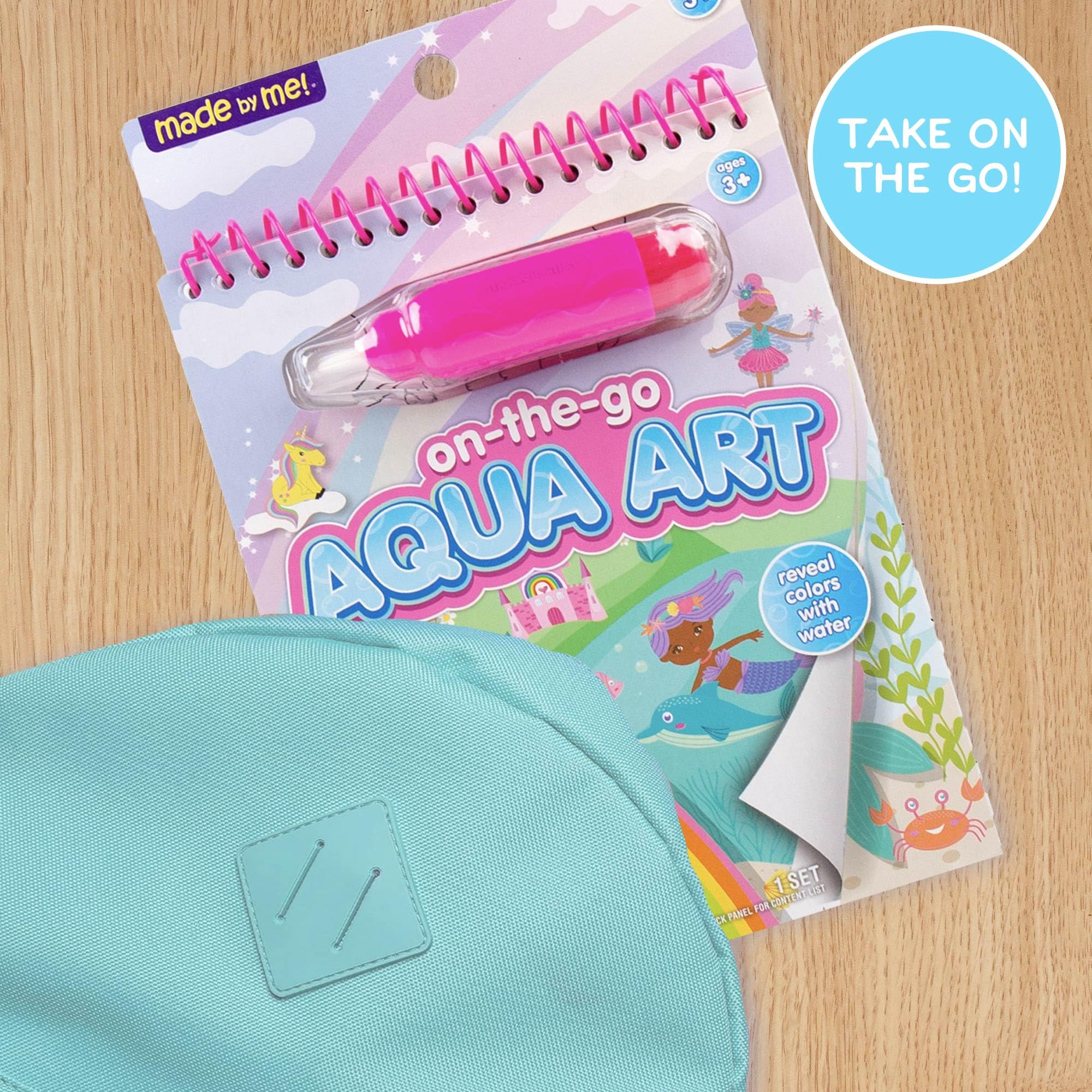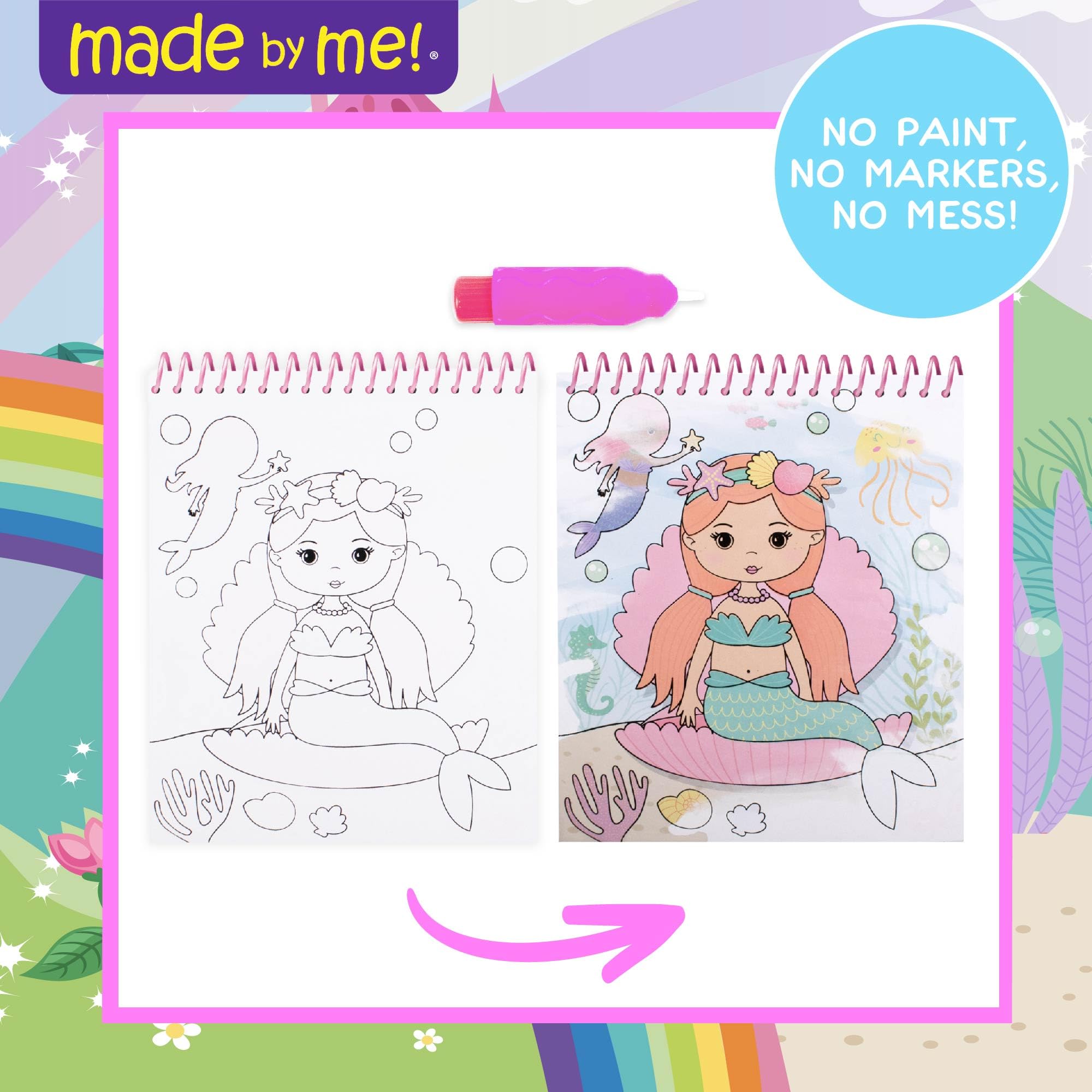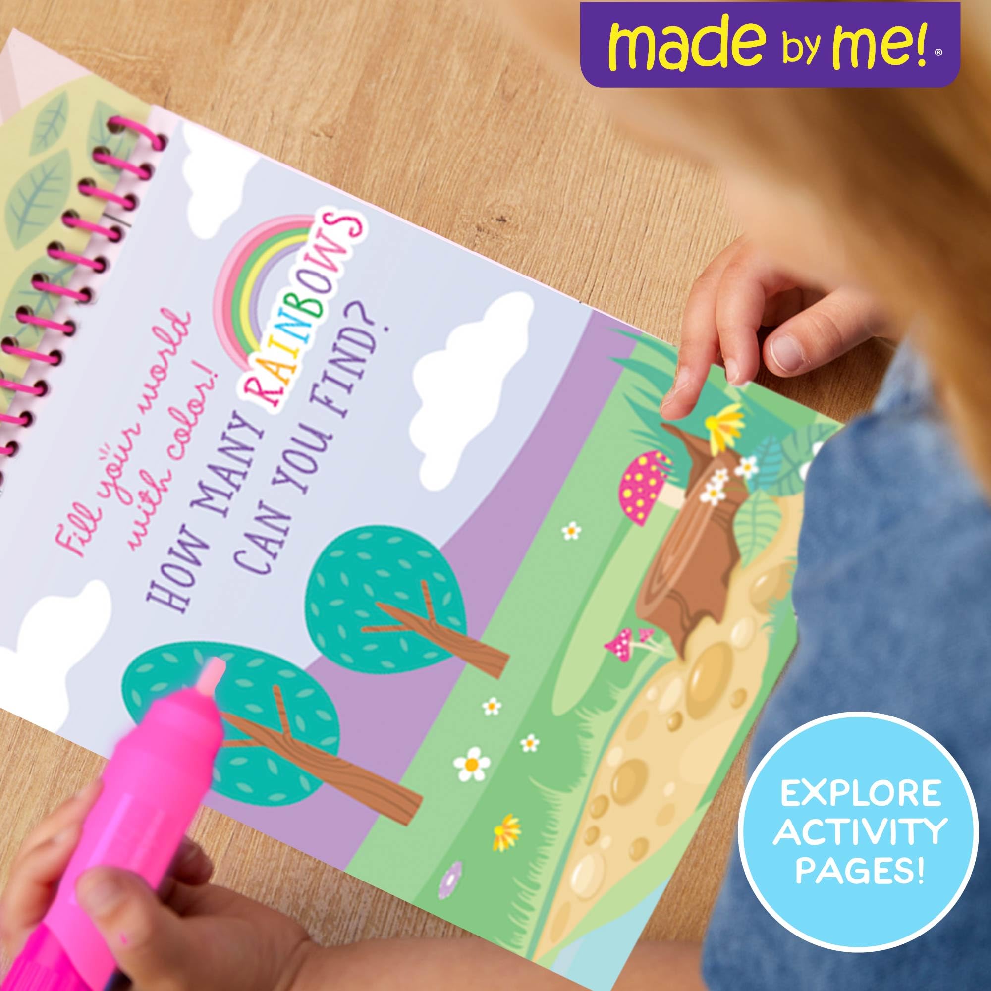 Discover just how magical your creativity can be with the latest in paint with water books for kids by Horizon Group USA: Made By Me On-the-Go Aqua Art! This 4-page water activity book puts an exciting twist on traditional coloring books. Use a chunky, easy-to-hold water brush pen to transform blank pages into colorful fairytale worlds! Simply unscrew the brush pen, fill it with water, and watch the pages burst with color after every stroke! Follow the prompts for even more adventures, like counting rainbows, revealing fairies, and exploring the sea with a mermaid! Every page inside this spiral-bound watercolor book features interactive activities and toddler arts and crafts to enjoy over and over — once the water dries, refill the pen and color again! Small enough to bring on the go but large enough to keep kids occupied, our Aqua Art toddler water toys are a great choice, checking all the boxes when it comes to easy kids travel activities, toddler car activities, or toddler plane activities. This fairytale-themed mess-free toddler coloring book is an ideal travel toy for kids ages 3 and older!