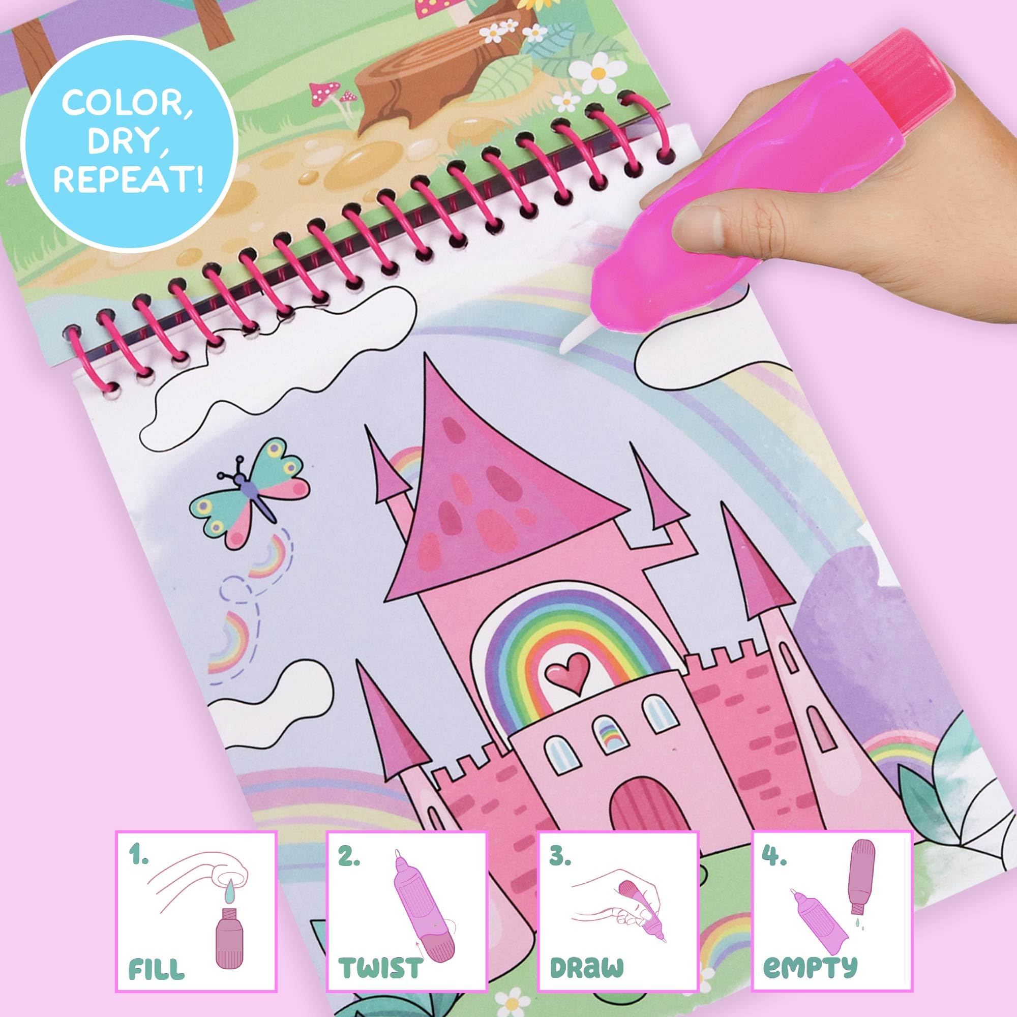 REVEAL SURPRISES: Watch the pages transform from simple line drawings when dry into colorful, fairytale scenes when wet — it's mess free painting for toddlers!