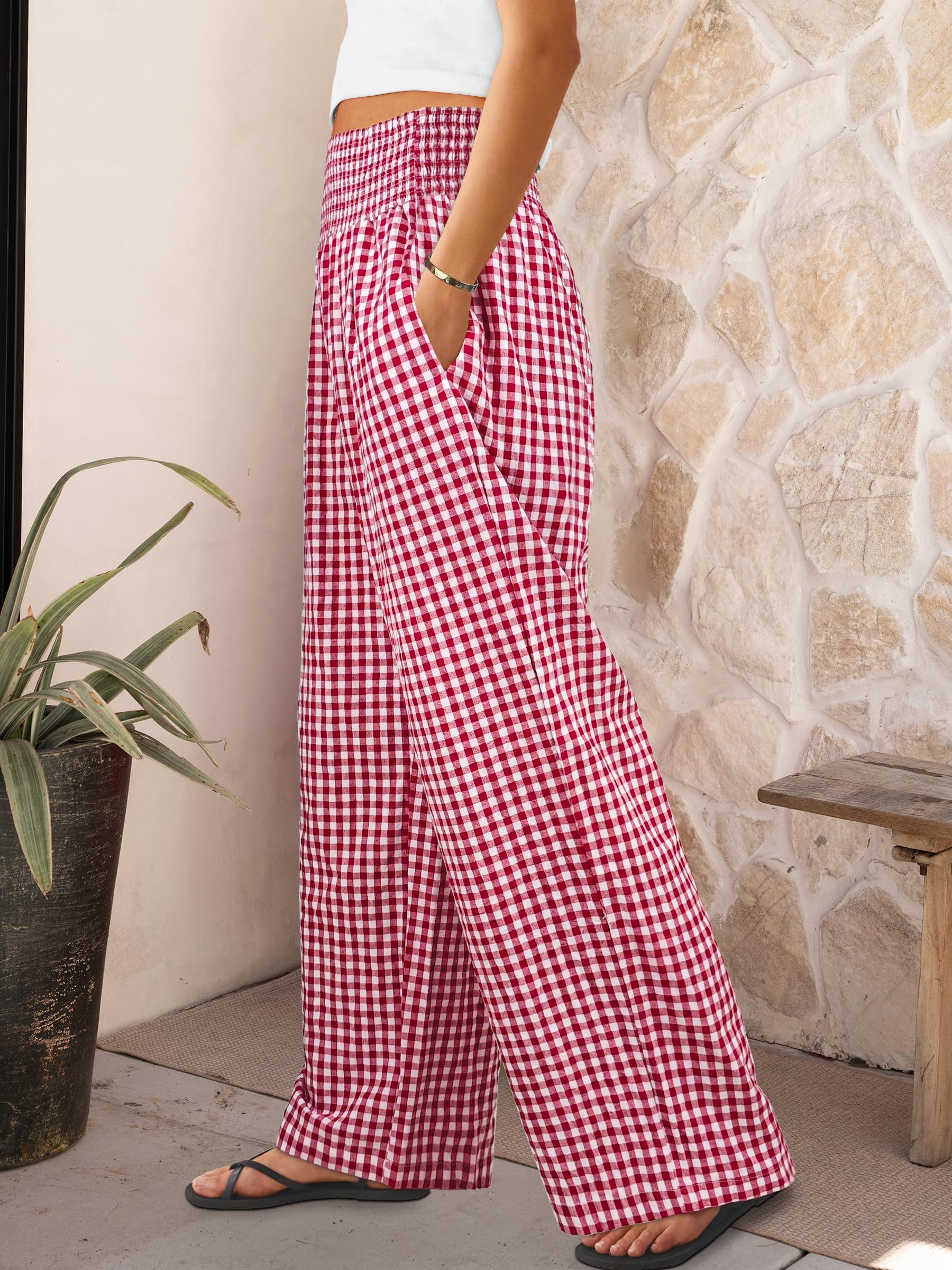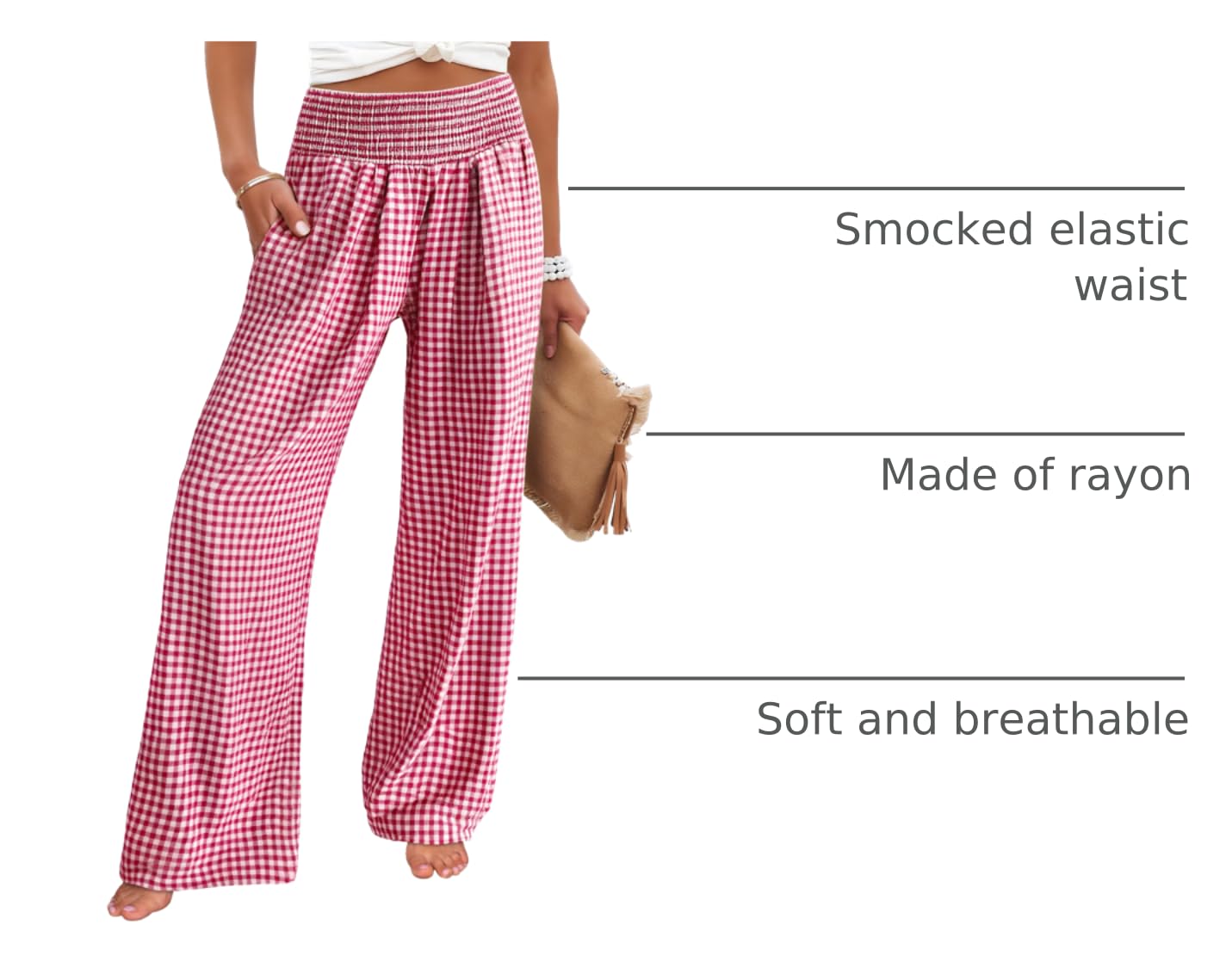 Features - Women's casual palazzo pants, smocked elastic waist, wide leg, long, plaid&stripe design, soft and breathable. Our pants are perfect for daily wear, lounging at home, hanging around outside, traveling, vacation, or office work. Easily matched with slippers, heels or sneakers.