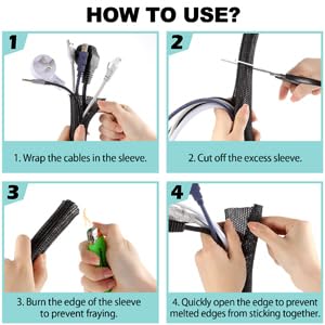 【Wire Cover for Many Cable +Easy to cut 】The cable tube can be easily cut with scissors. Length: 10 feet. Diameter: 1-1.5 inch (25-39mm). More cables can be held. Especially suitable for corners. It is recommended to cut the cutting position with a fire after cutting to prevent spreading