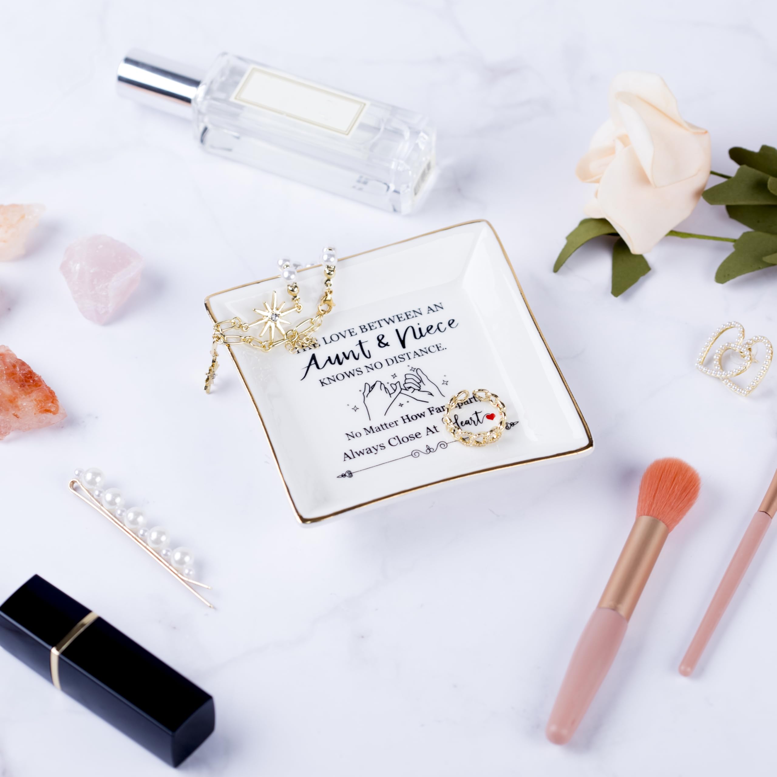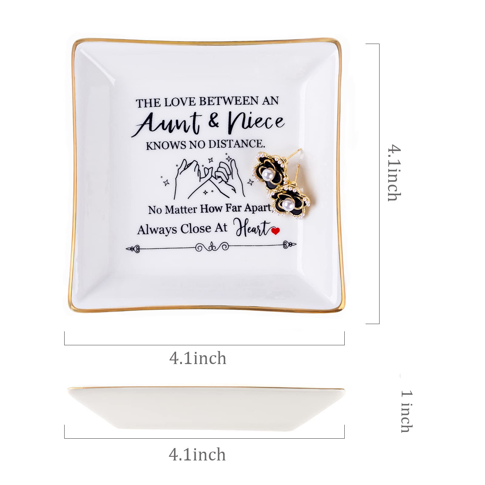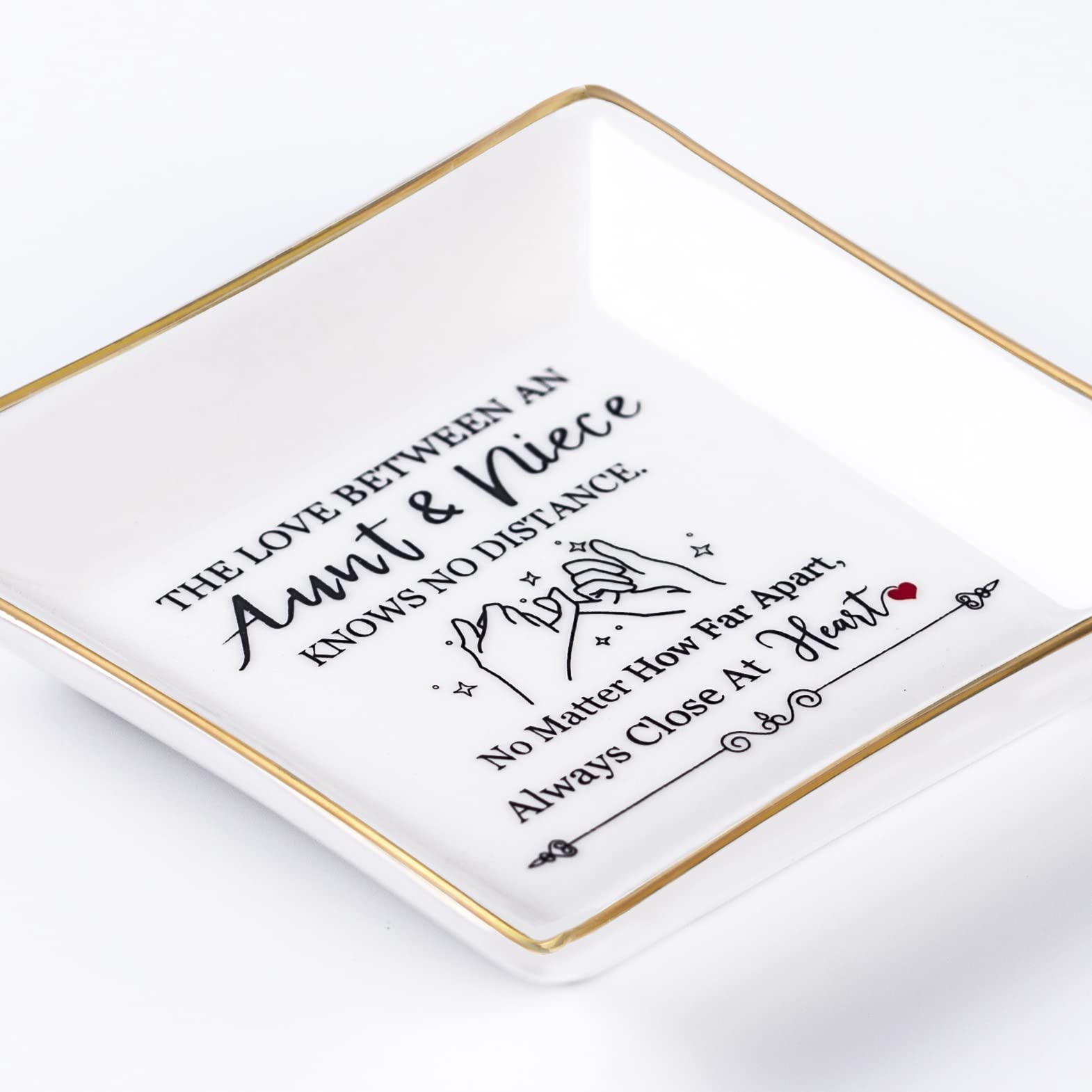Aunt and Niece Gifts: Aunt-themed ring dish can be given as a gift to your aunt on mothers day, valentine's day, and thanksgiving. The great aunt's birthday gift is a ceramic jewelry organizer. Happy Mother's day gifts for aunt, aunt and niece gift, niece gifts from aunt. "The love between an aunt & niece knows no distance, no matter how far apart, always close at heart" engraved jewelry dish, which reminds your aunt of the closed bond between you and her