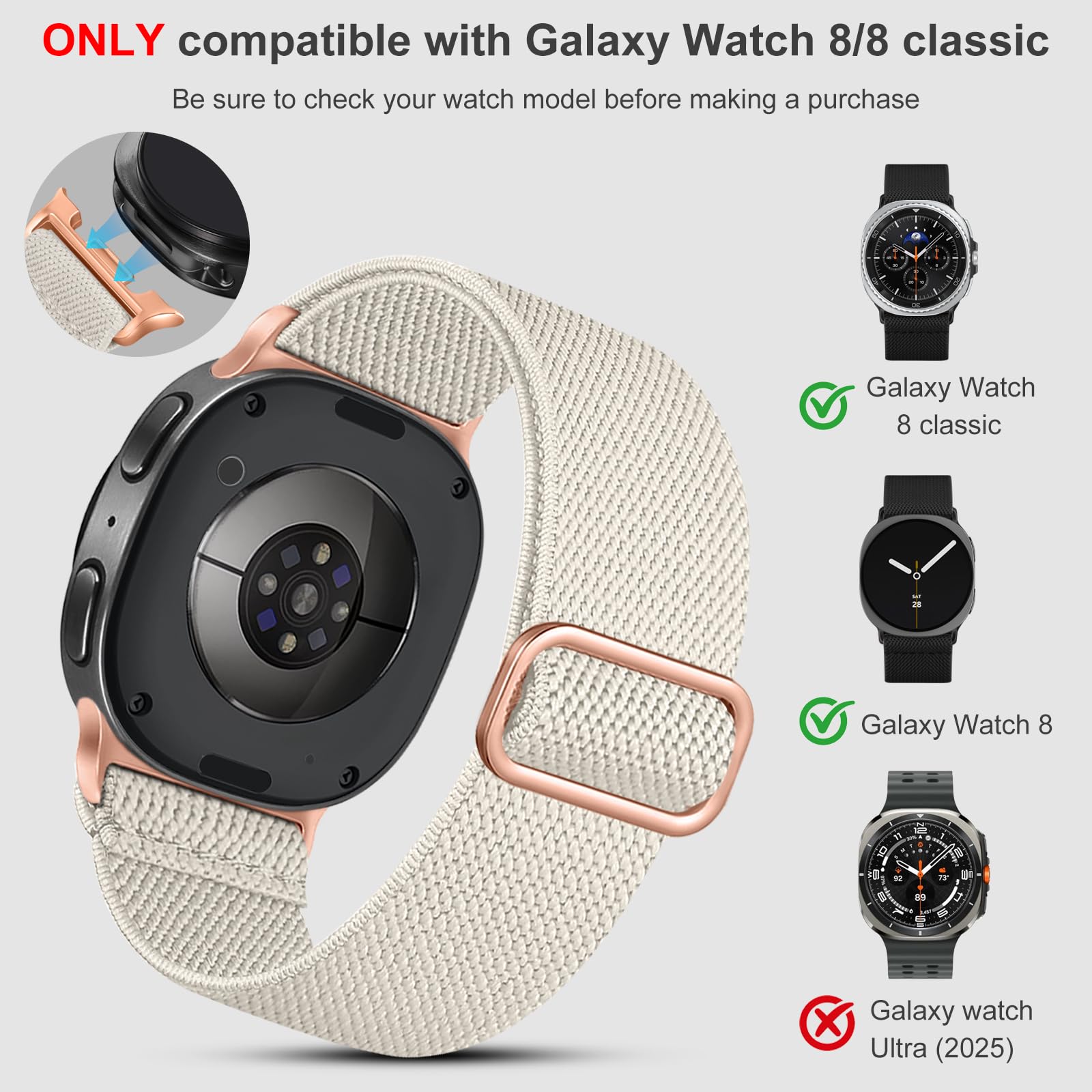 【Breathable & Stretchy Nylon Material】 Our bands compatible with Samsung Galaxy Watch 8 band made of super strong stretchable elastic braided nylon material, which makes the strap soft, lightweight, breathable & skin-friendly, preventing skin from irritation rash. Works for all day-workouts and daily life, bring you a new comfortable wearing experience.
