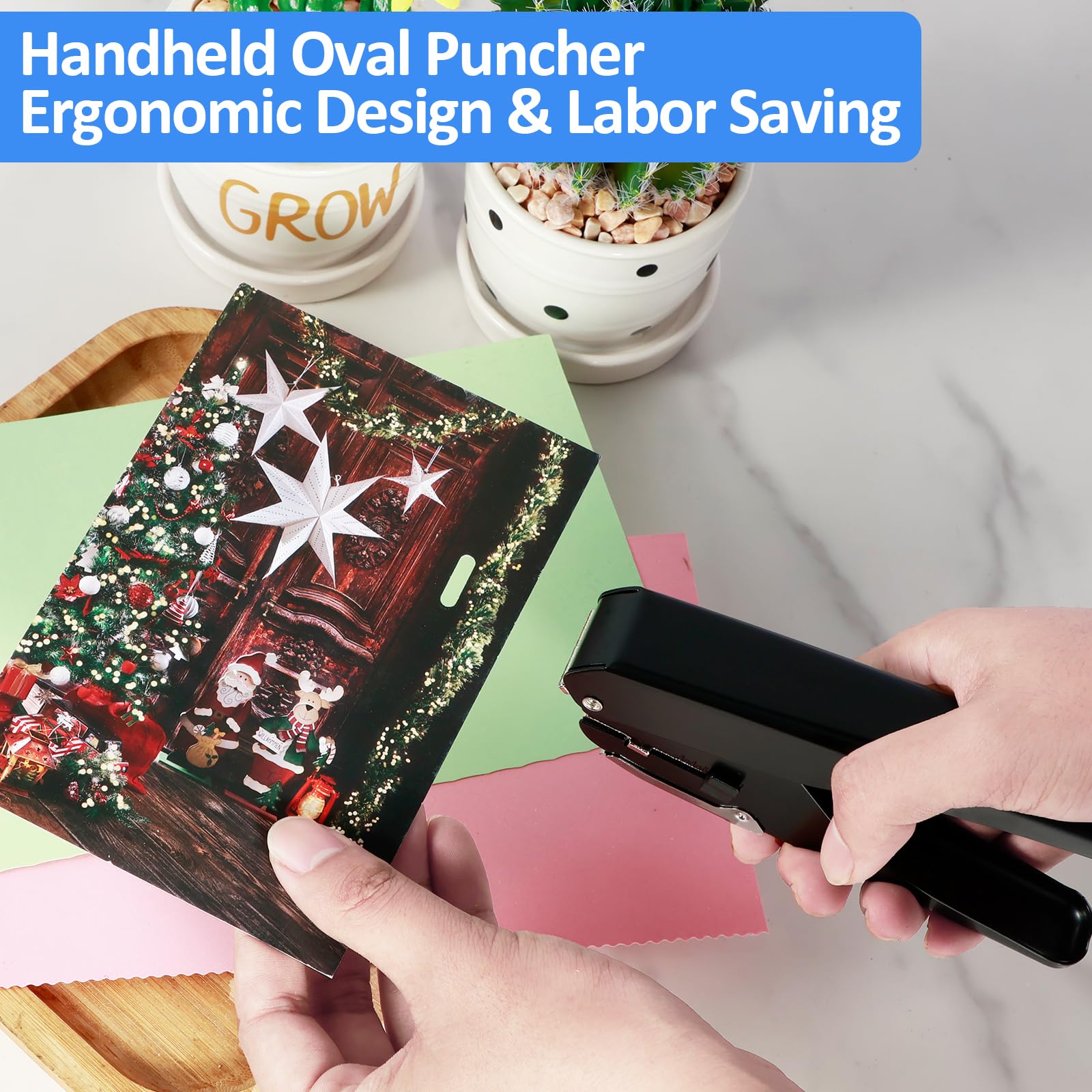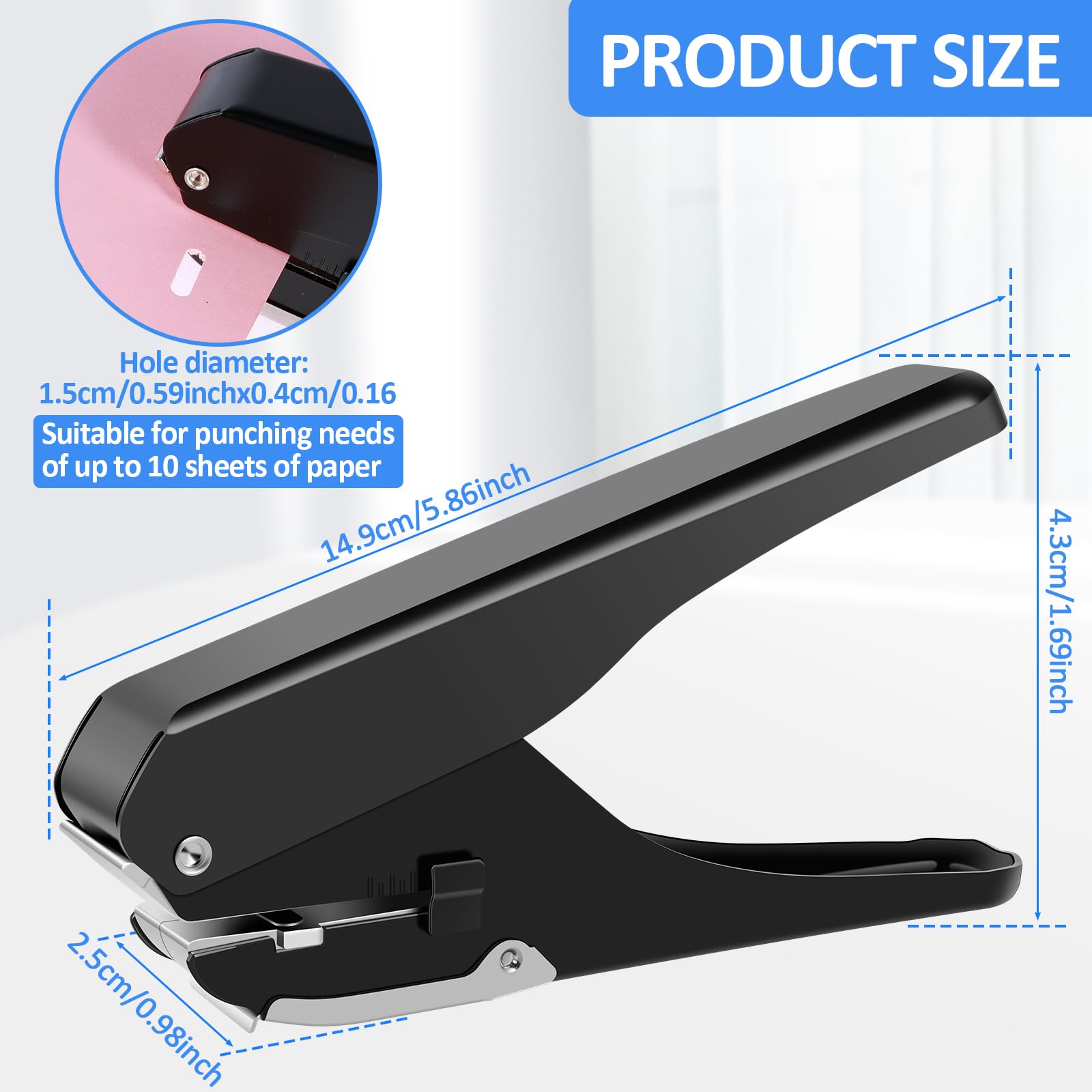 (*^_^*) [Precise Punching Slot Holes] paper stopper positions the hole to ensure the accuracy of each punch. It is efficient and easy to handle oval holes with a hole diameter of 15x4mm, suitable for punching needs of up to 10 sheets of paper.