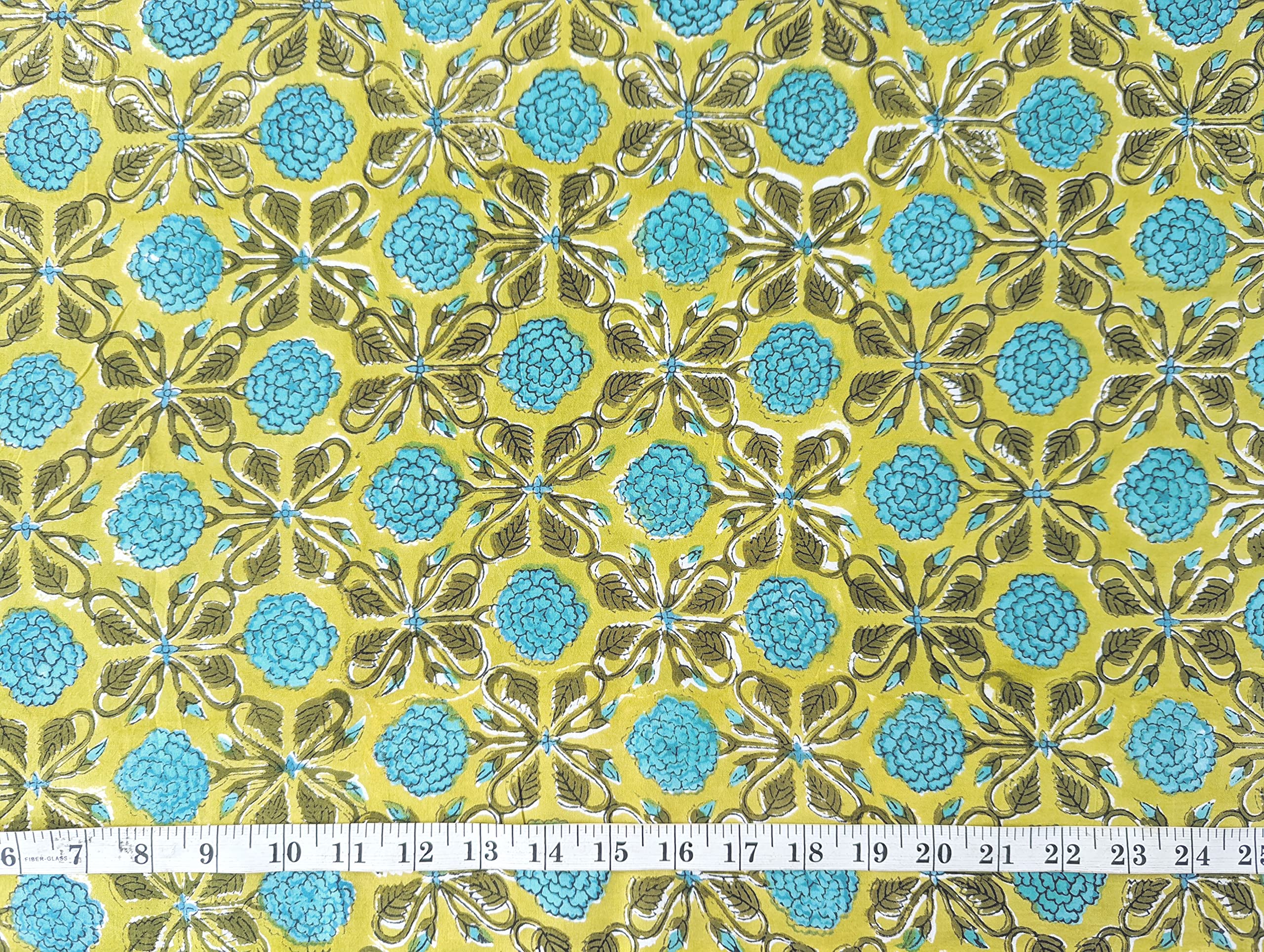 This is a precut piece of 1 yard of an Indian cotton fabric. This is a hand printed fabric using wooden blocks or screens. The width of the fabric is 42 inches. It is a pure cotton yardage and is a thin light weight cotton. Ideal for garments and light home linen. Use this unique and beautiful printed cotton for your next sewing project. If you order 2 quantity, you will receive 2 pieces of cut fabrics of 1 yards each. You will not receive a continuous yardage.
